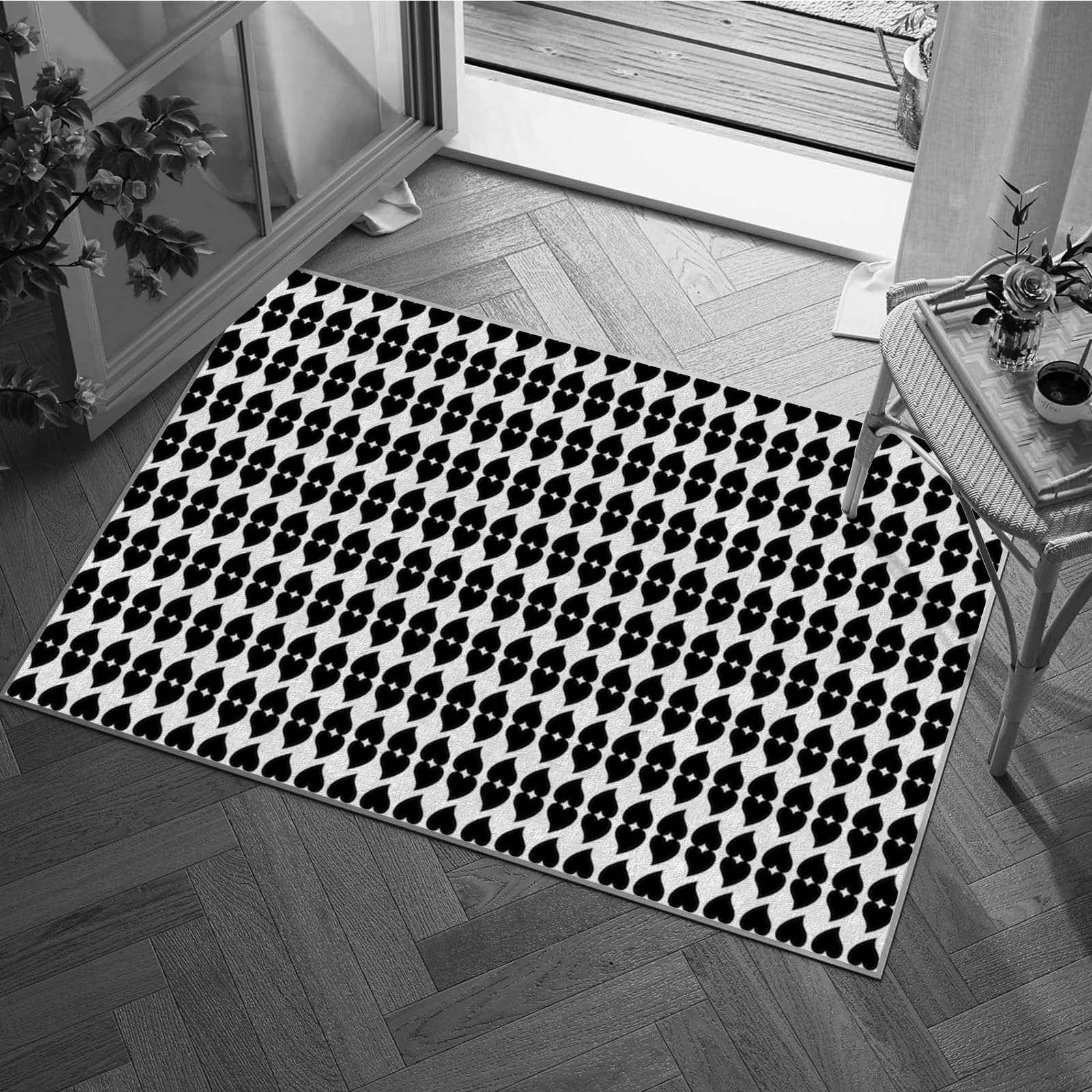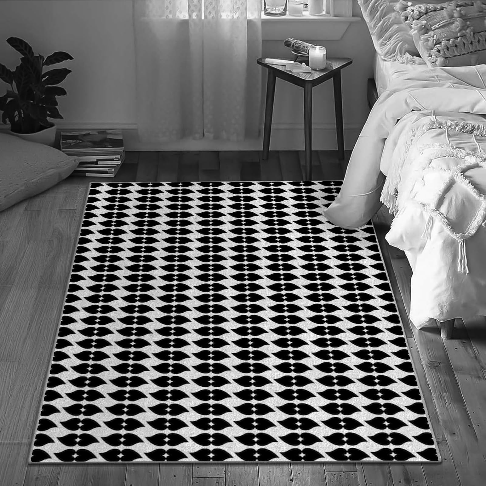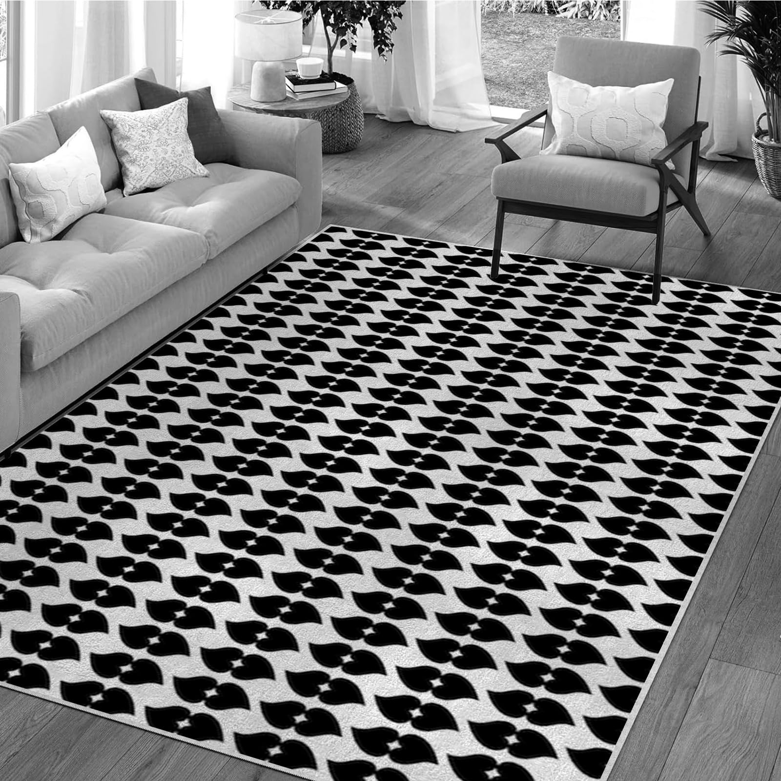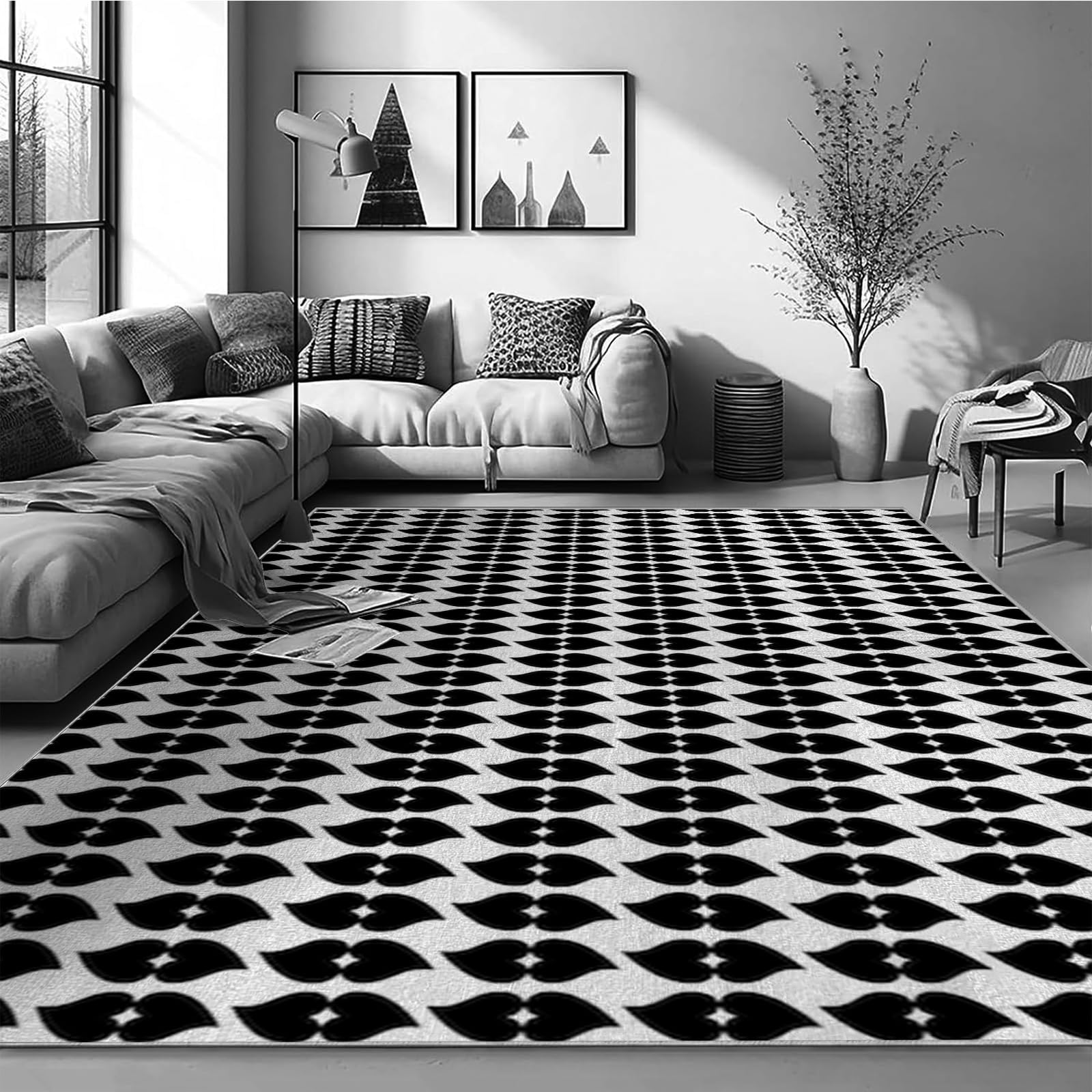 3×5ft Modern Geometric Floral Area Rug - Non Slip Low Pile Polyester Rug for Living Room,Bedroom,Office 3D Stereoscopic Vision,Machine Washable Geometric Design Carpet Black/White Q1903