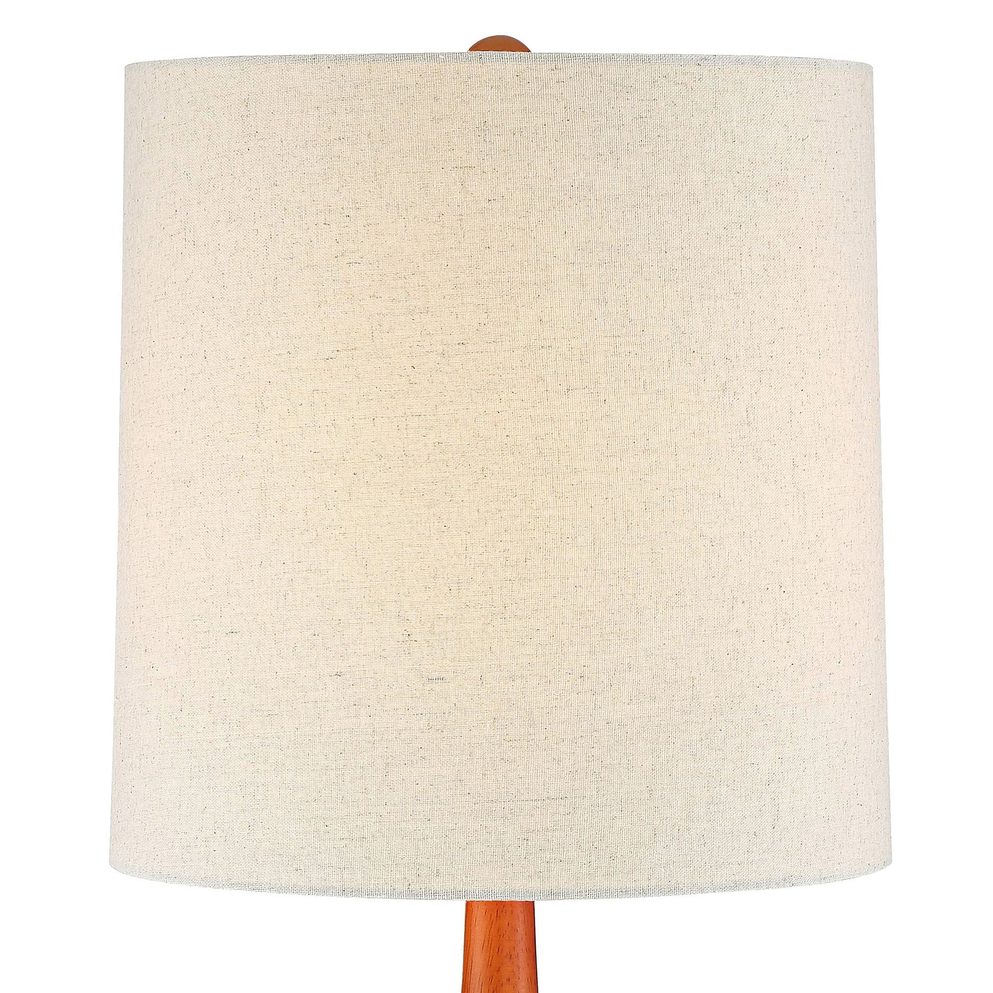 - 【Pre-Assembled Shade】Handcrafted brown finish ceramic base with a hammered effect. Because the base is handmade, there may be slight variations in color and pattern. Warm red oak finish wood neck and bottom. Off-white fabric cylinder shade. 7-foot long black cord and plug.