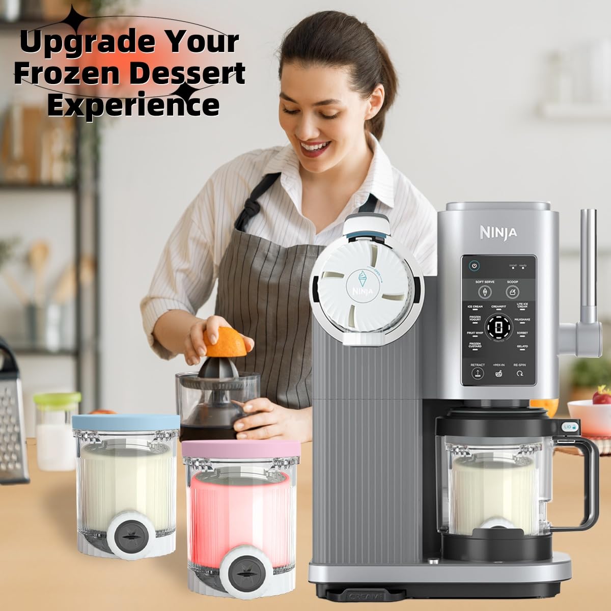 4 Pack Creami Pints and silicone Lids for Ninja NC700 NC701 Series, Compatible with Ninja Swirl Ice Cream & Soft Serve Makers, BPA-Free & Dishwasher Safe, Replacement XSK7PNTLD2