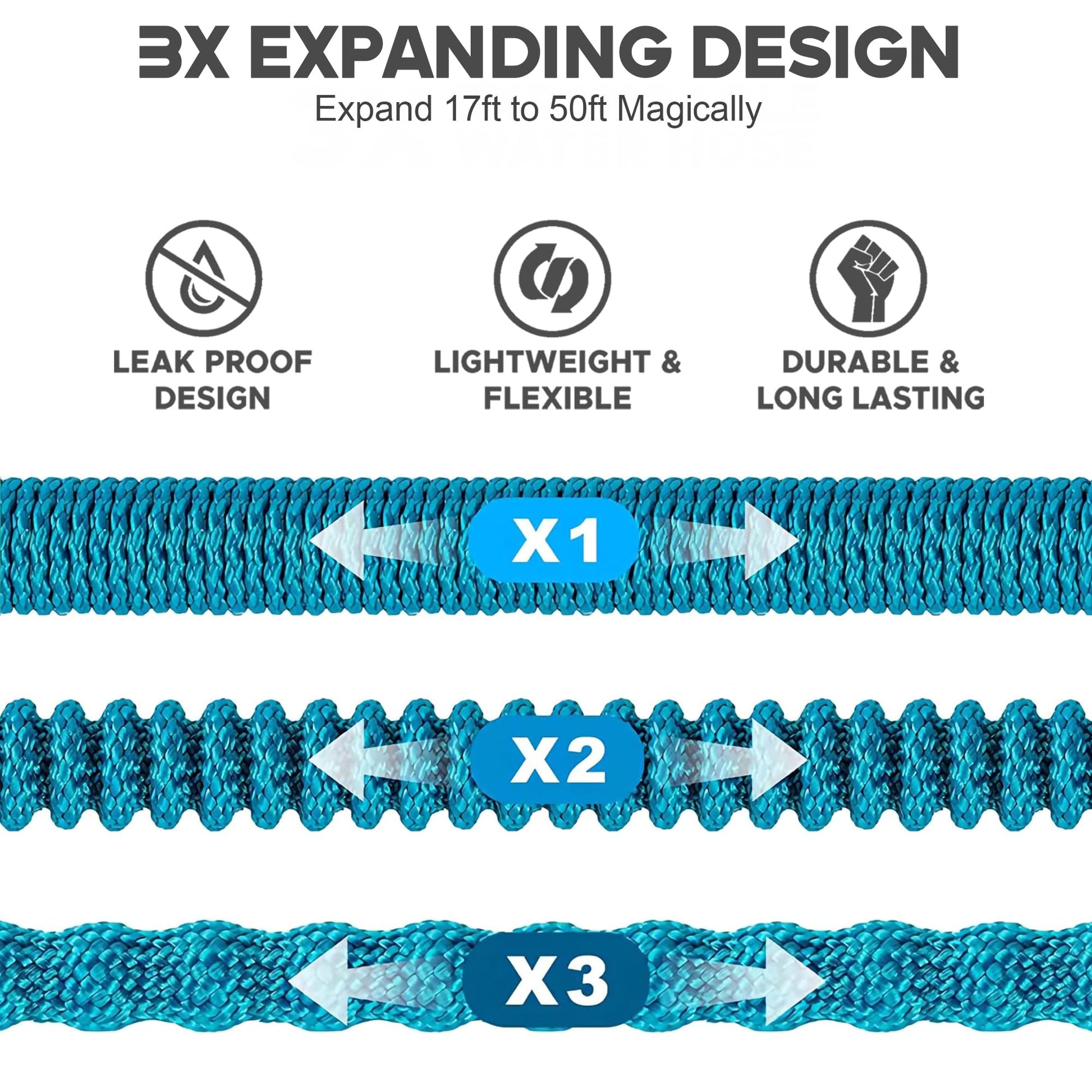 Details: 50 ft Expandable Garden Hose with 10 Function Spray Nozzle - New Patented Water Hose with 40 Layers of Innovative Nano Rubber - Lightweight, Durable, Flexible, 50ft Retractable Stretch Hose (Blue)