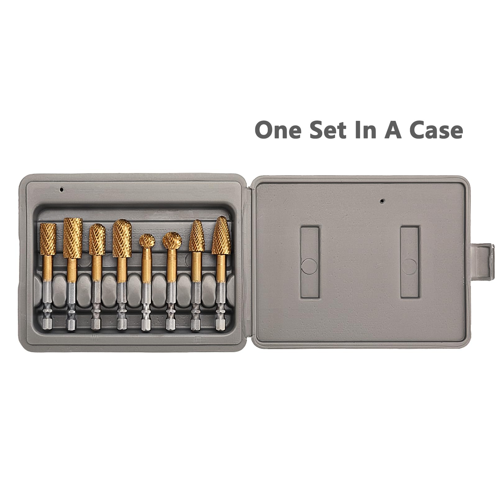 8Pack Carbide Burr Set (3/8 & 1/2 inch Diameter) with 1/4 inch Hex Shank,Tungsten Carbide Rotary Burr Set for DIY Grinder Metal Wood Engraving Polishing Drilling Grinding Milling Cutting