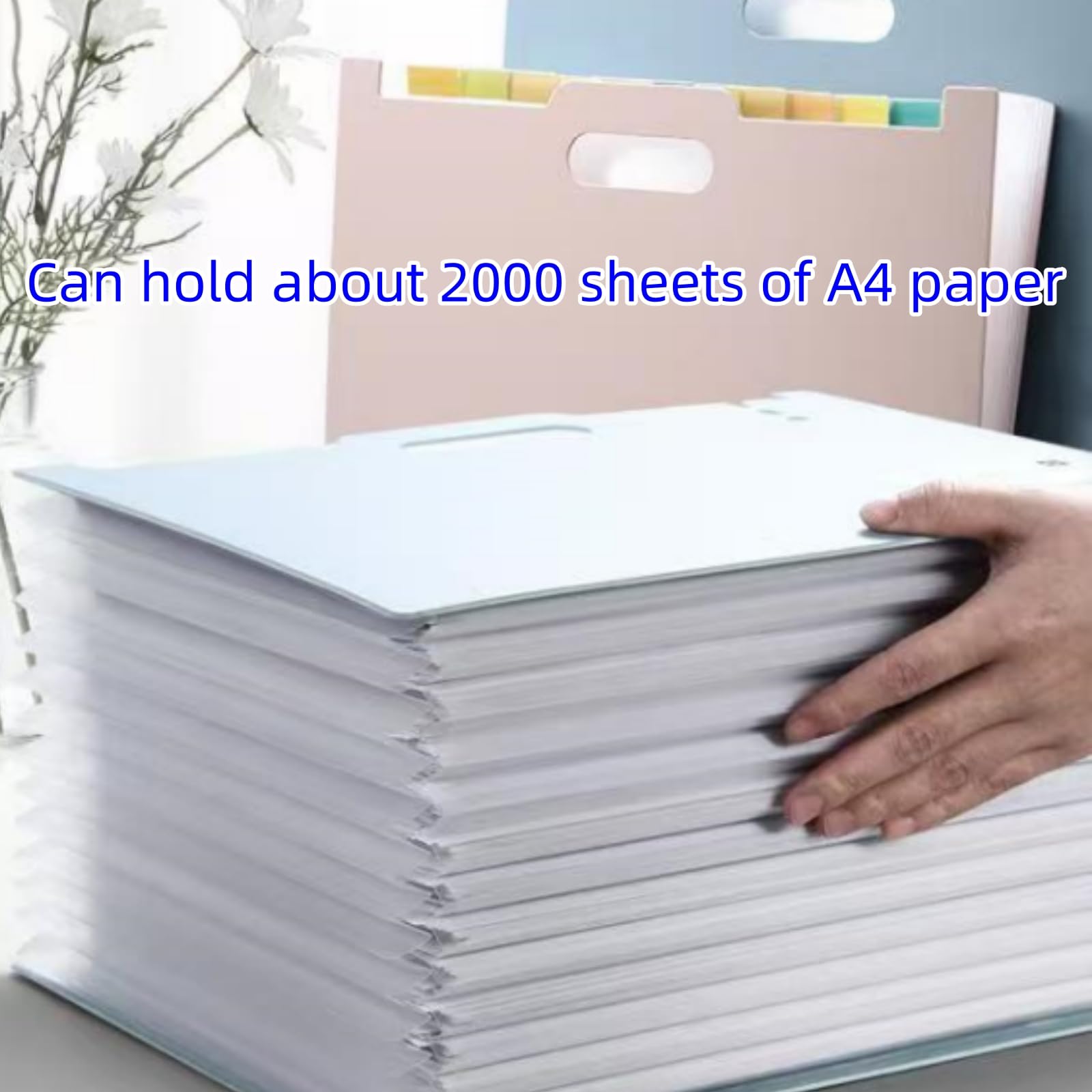 The folder can hold up to 2000 sheets of paper, making it suitable for organizing various documents.