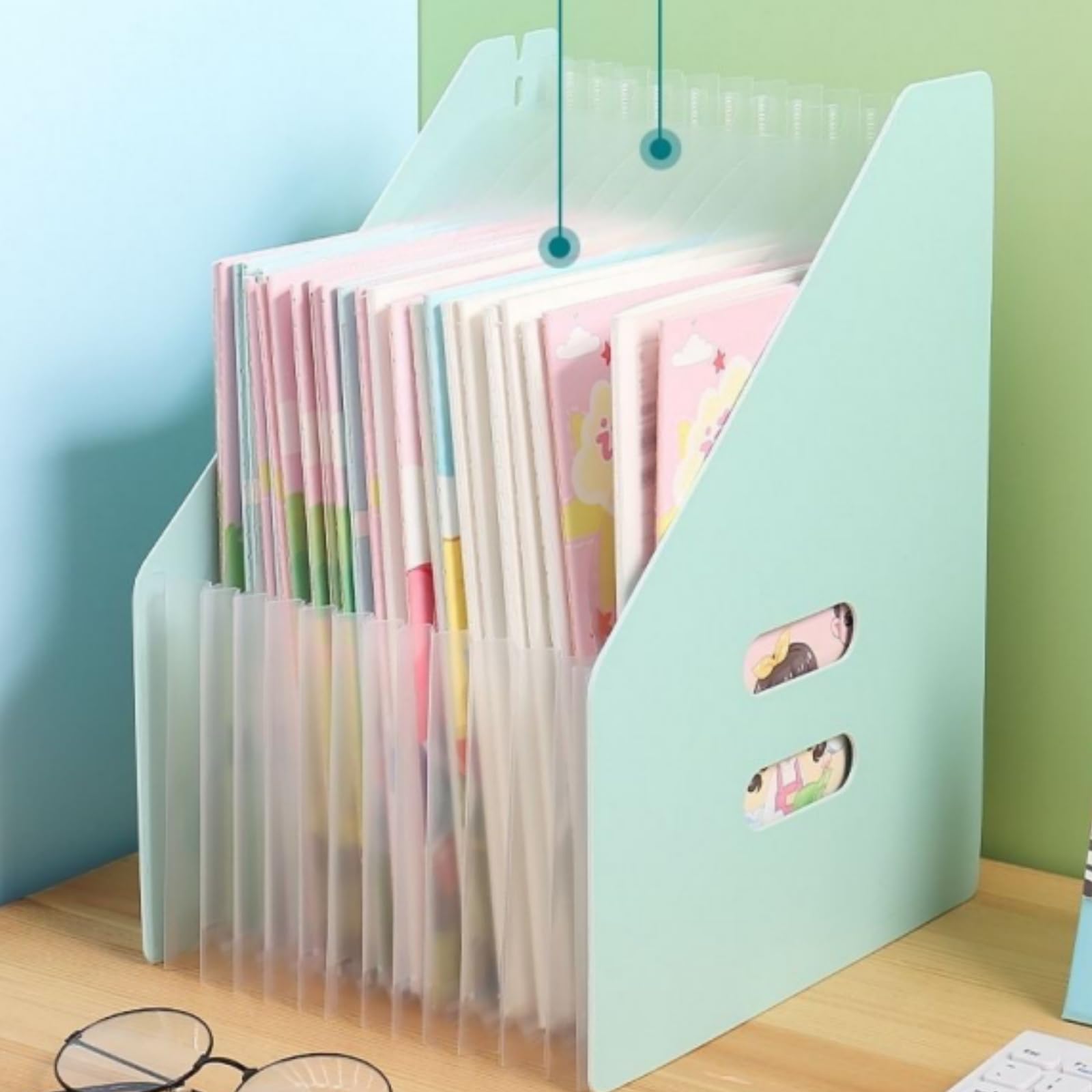 File folder organizer made of durable PP material that is tear and water resistant and easy to clean.