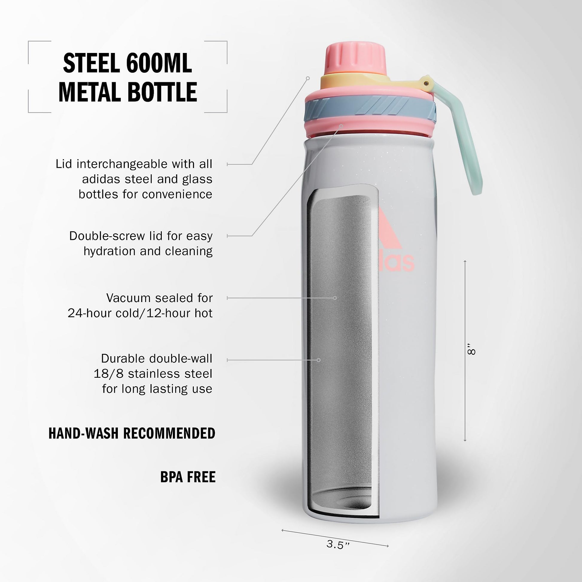 adidas 600 ML (20 oz) Metal Water Bottle, Hot/Cold Double-Walled Insulated 18/8 Stainless Steel