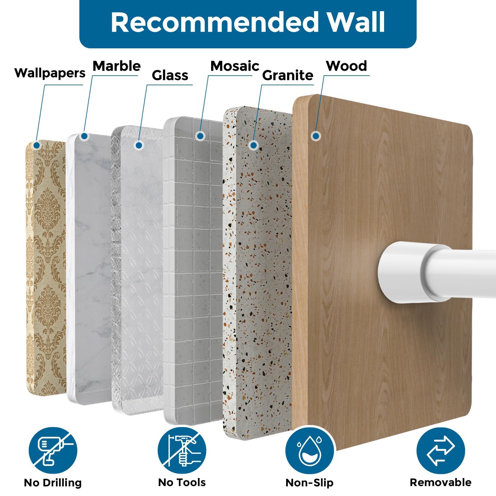 - 【EASY INSTALLATION】:It is simple and convenient to use, it can be stretched to the length you want to use by just rotating it gently. Note that this product is a splicing type. Two rods with anti-skid pads at one end are spliced together and can be rotated for use. If you have any questions about the product, please consult our customer service team, we will serve you online 24 hours a day.