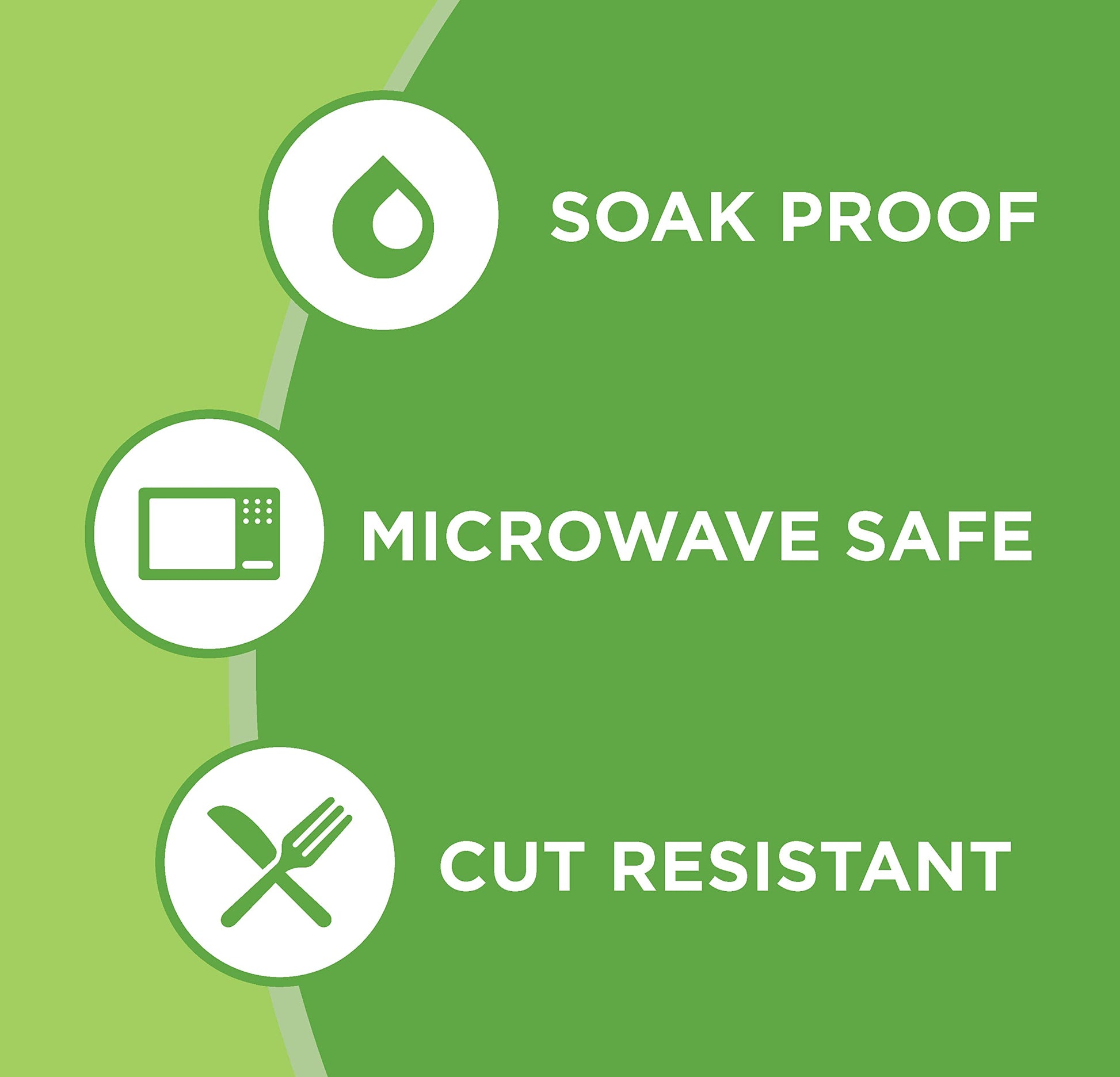 - Microwave-safe, soak proof, and cut resistant
