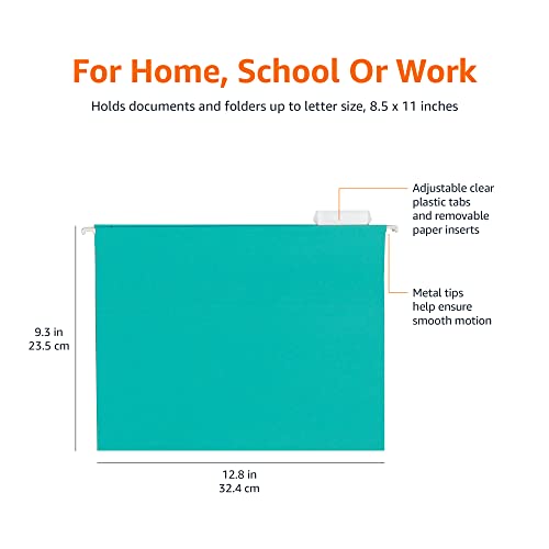 Amazon Basics Hanging File Folders, Letter Size, Aqua, 25-Pack
