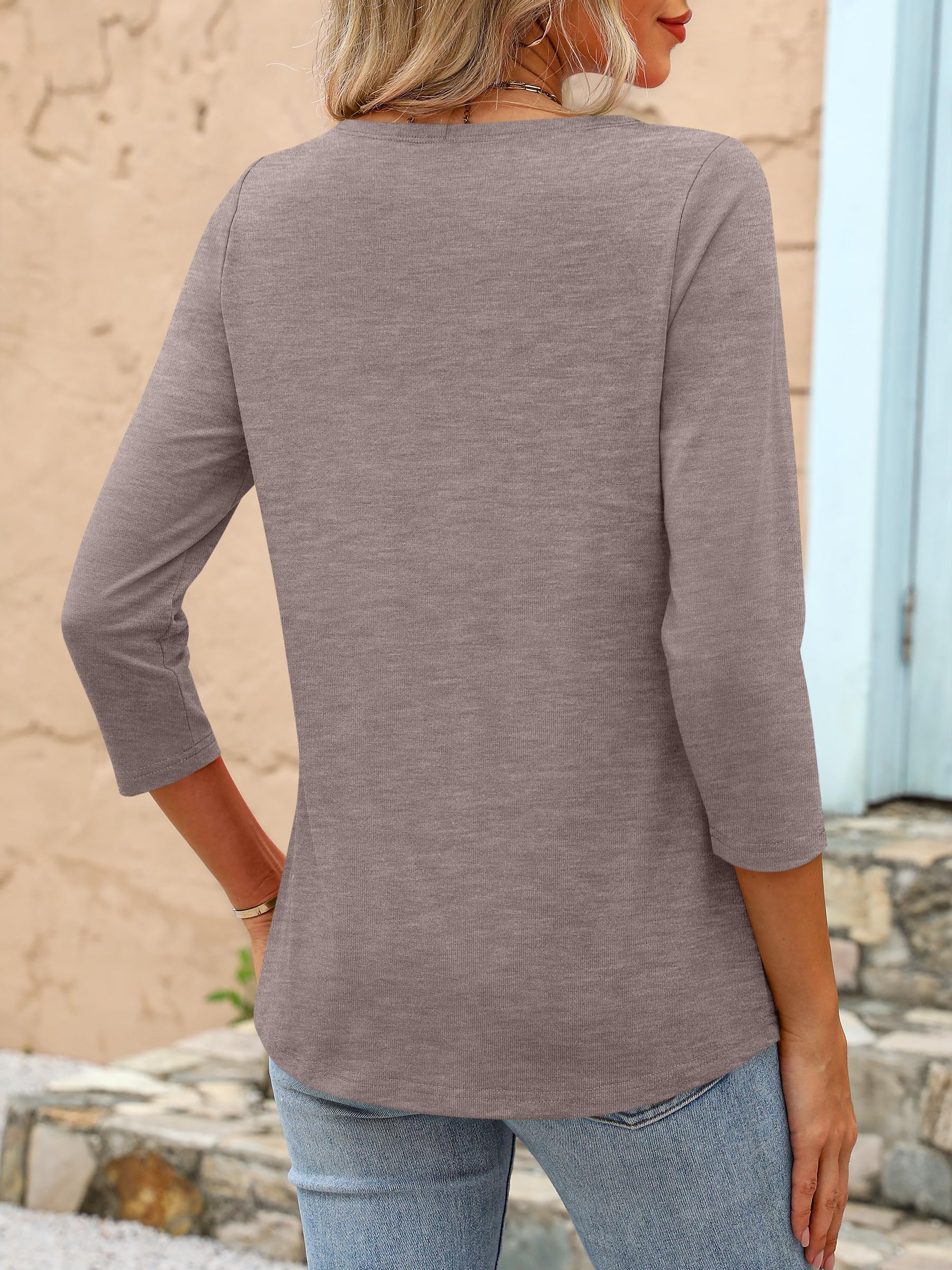 ANRABESS Womens 3/4 Length Sleeve Tops 2025 Summer Tee T-Shirts Boat Neck Tunic Travel Basic Blouses Fall Fashion Outfits Light Coffee Large