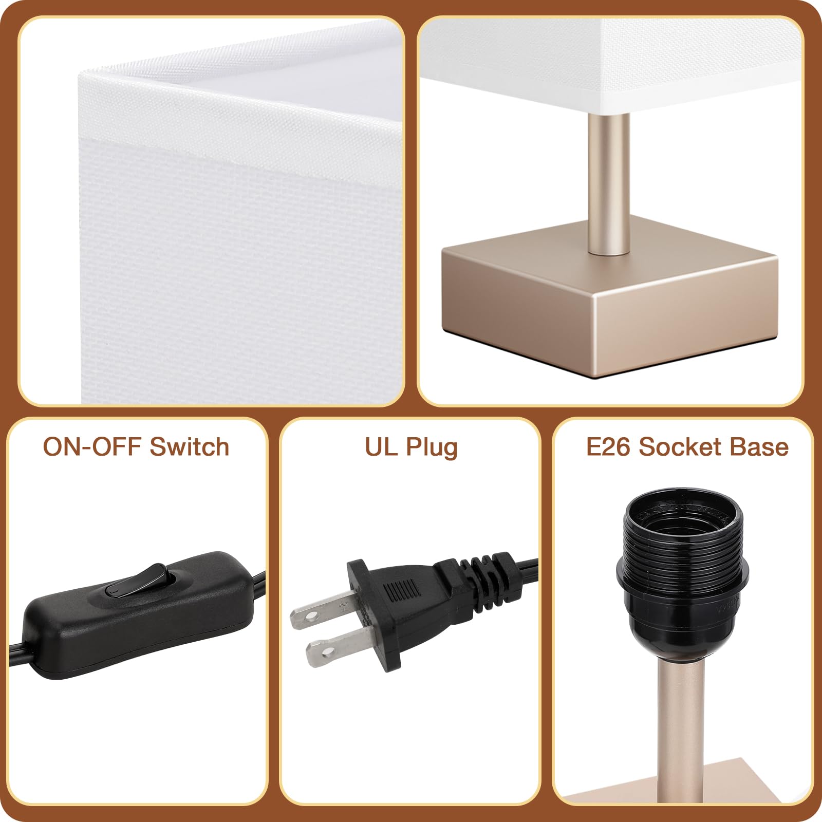 aooshine Antique Small Table Lamp - Bedside Lamp for Bedroom, Minimalist Nightstand Lamp with Square Fabric Shade, Desk Lamp for Kids Room Dorm