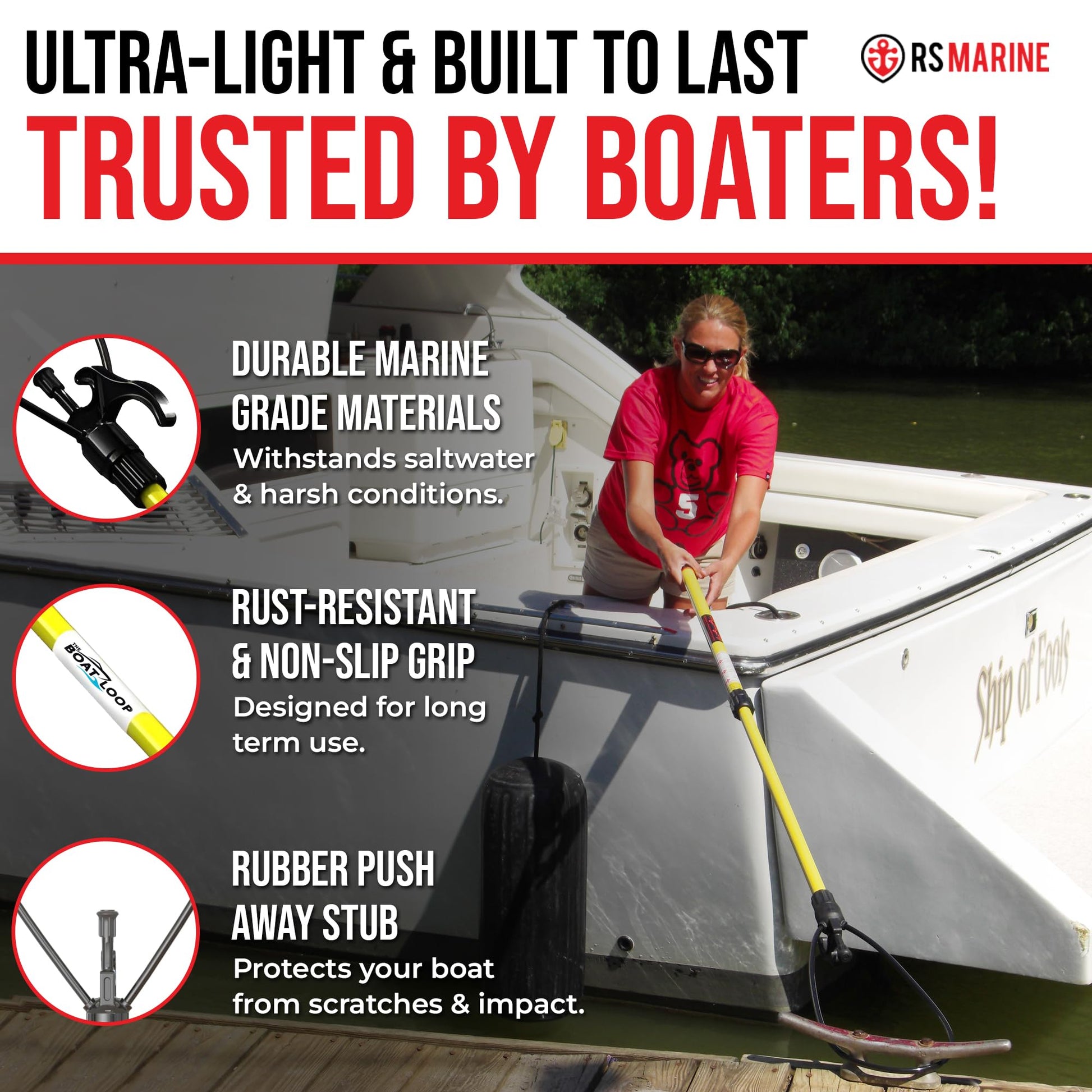- MULTI-FUNCTIONAL UTILITY - More than just a docking pole—use the Boat Loop for retrieving overboard items, handling boat lines, or safely pushing off docks and boats. Ideal for solo captains and boating crews.