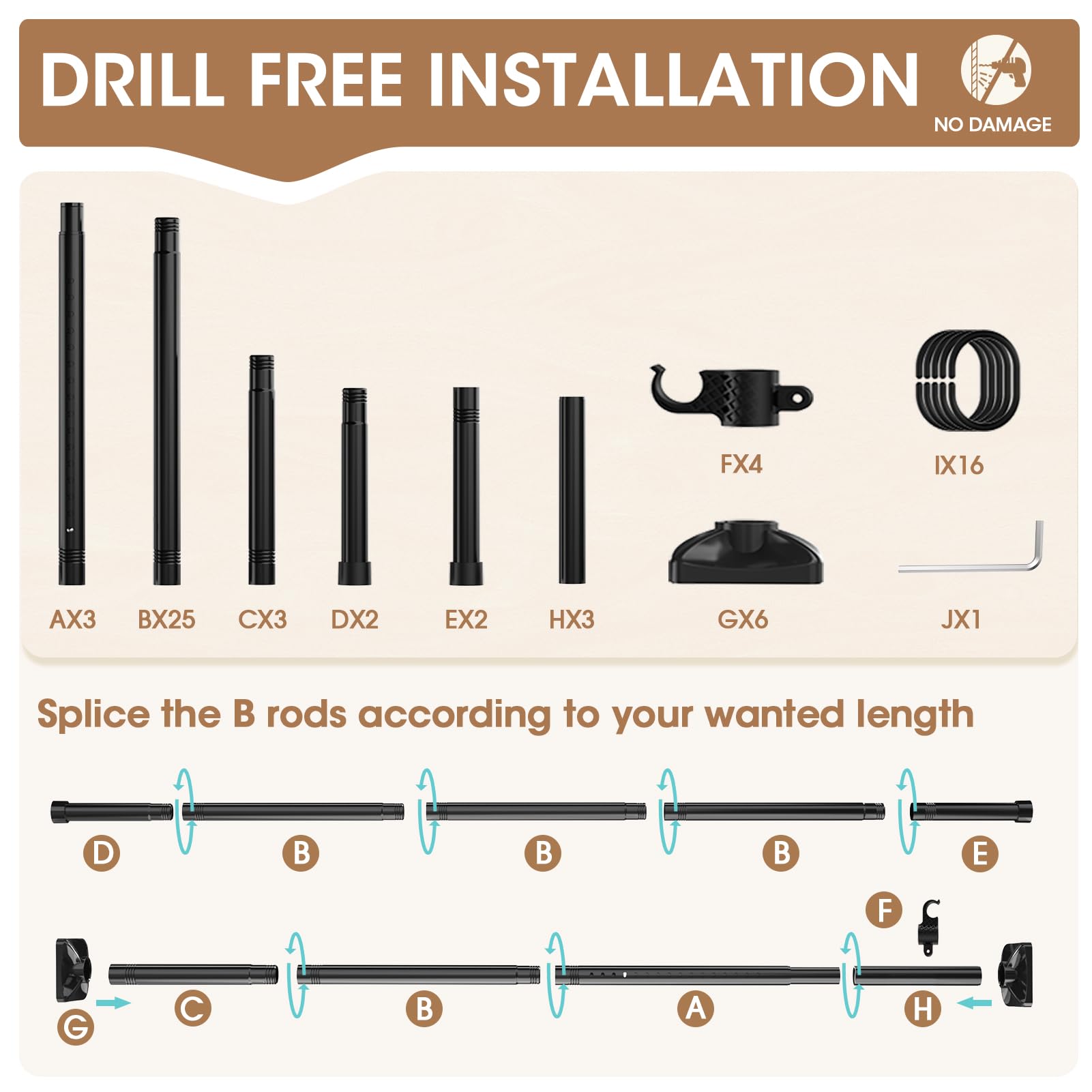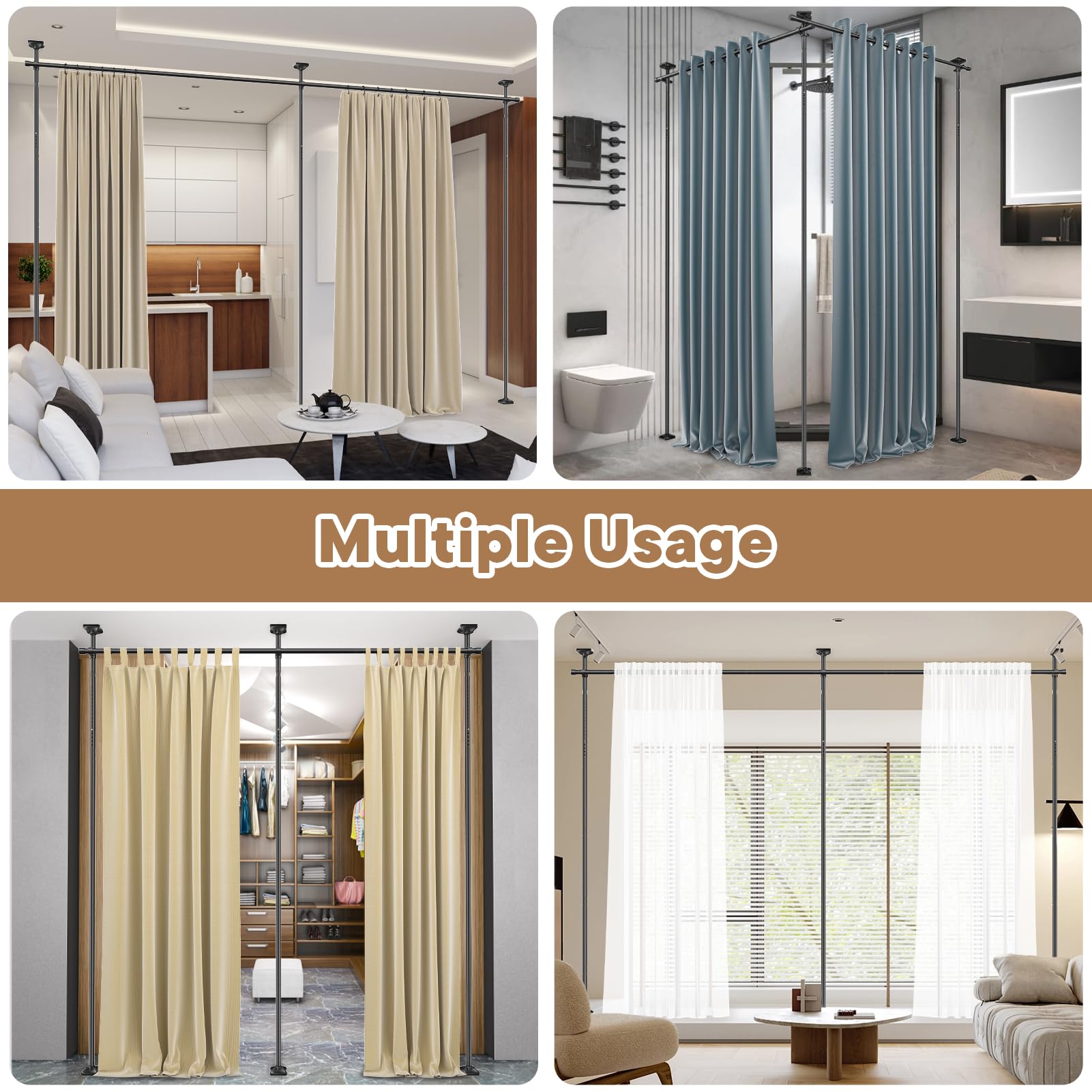 - 【No Dril & No Damage】 This no drilling room divider is designed with strong floor-to-ceiling tension support, will not leave holes or damage, so it's an ideal solution for hard-to-install areas such as rental homes, apartments, dorms and other temporary spaces. Suitable for a wide range of surfaces such as wooden, marble, tile, plaster...