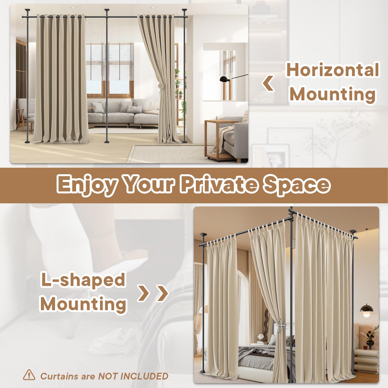 Bonpally Room Divider Curtain Rod, No Drilling Tension Rod for Room Separation, 4-10ft(H)28-114inch(W) Adjustable Heavy Duty Floor to Ceiling Wall Divider Room Partition Privacy Separator, Black