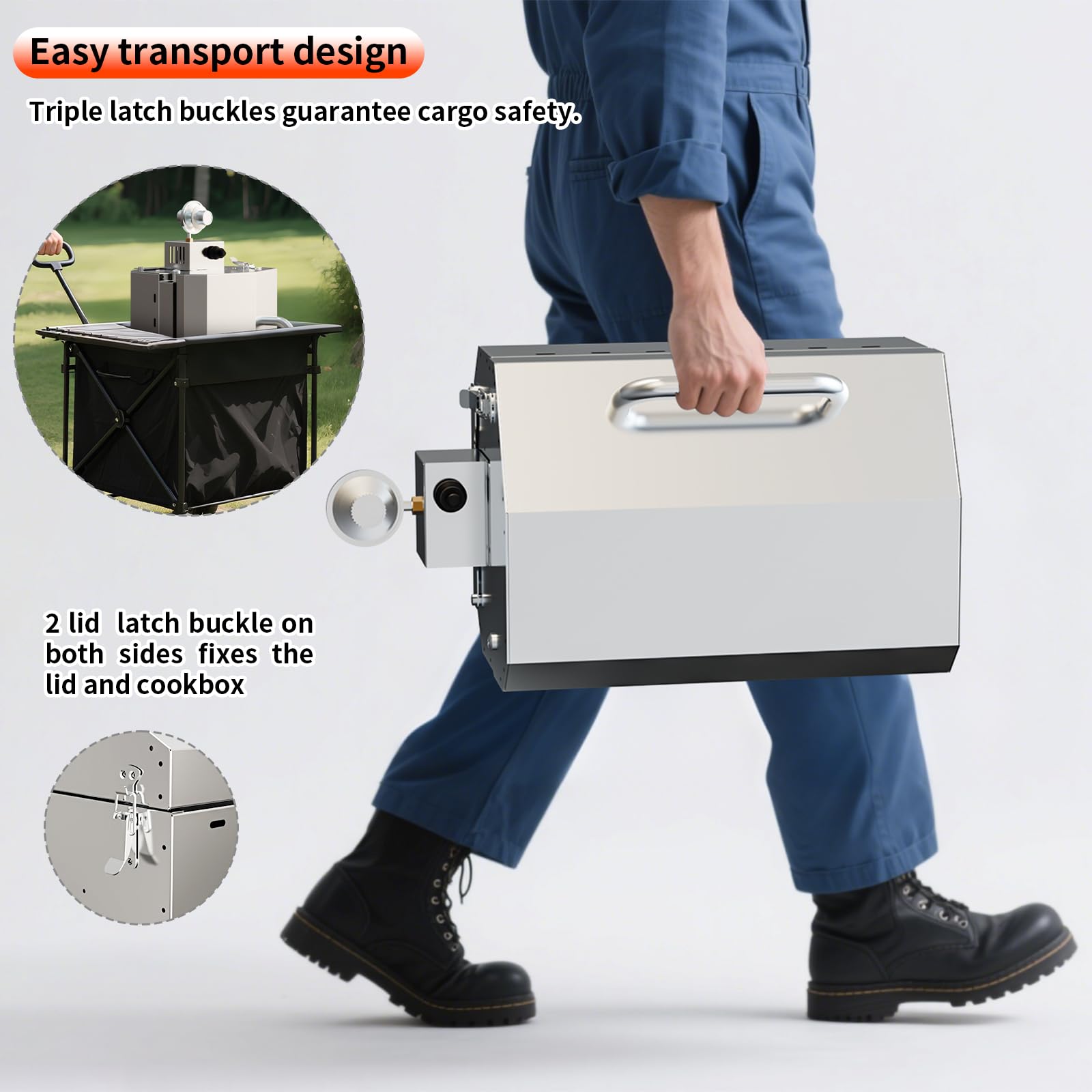 - 【ULTRA-COMPACT & TRAVEL-READY】Fits anywhere: car trunk, RV kitchen, or small balconies (15”x11.3”x11.5”). Fold legs and secure the locking lid for shake-proof carrying. Includes a heat-resistant handle for safe transport.
