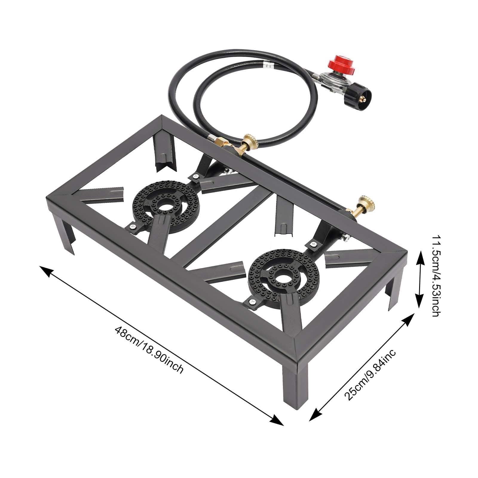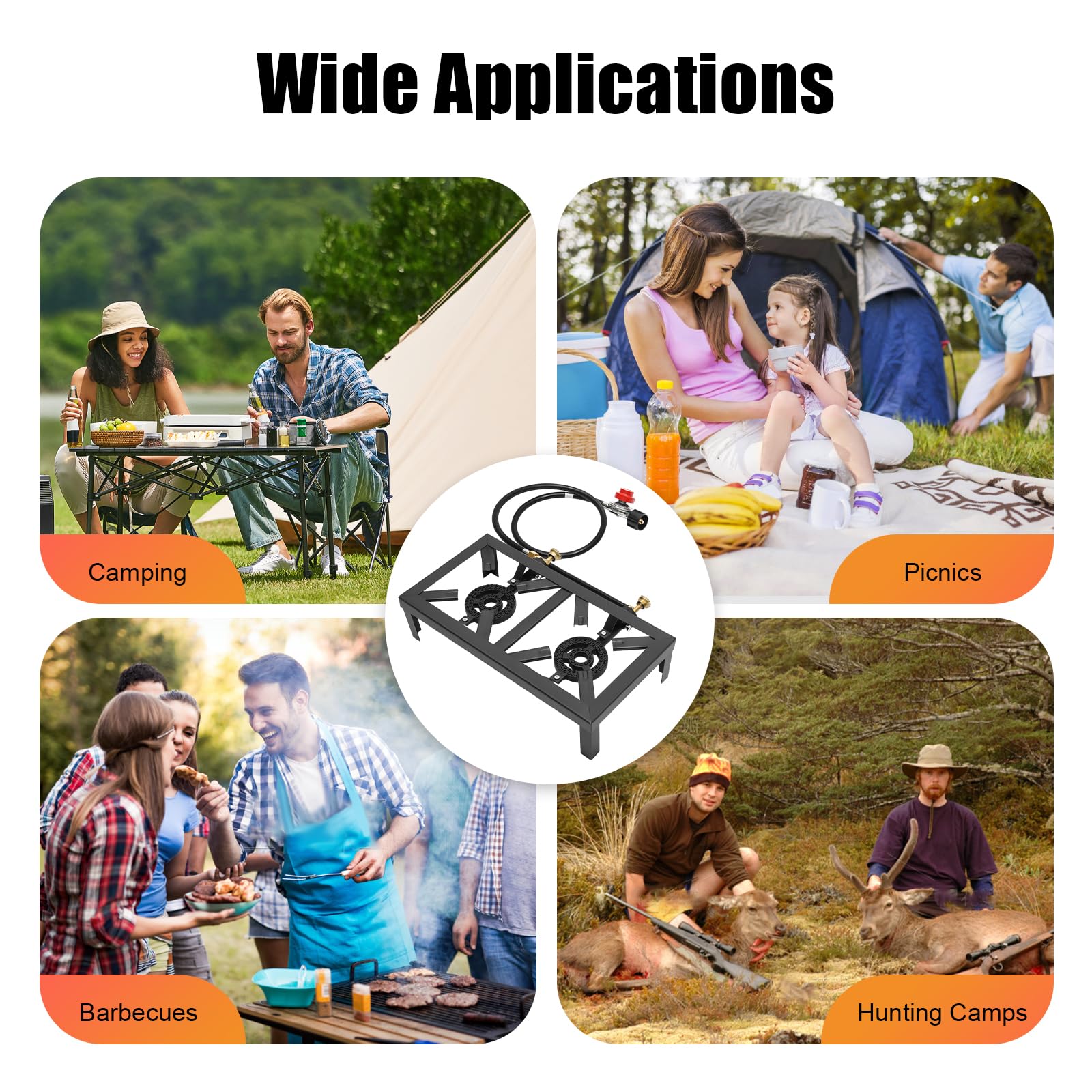 Camping Double Burner Stove, Adjustable 0-10Psi Cast Iron Camp Stove, Portable Outdoor Cooktop for Picnics & Camping & BBQ