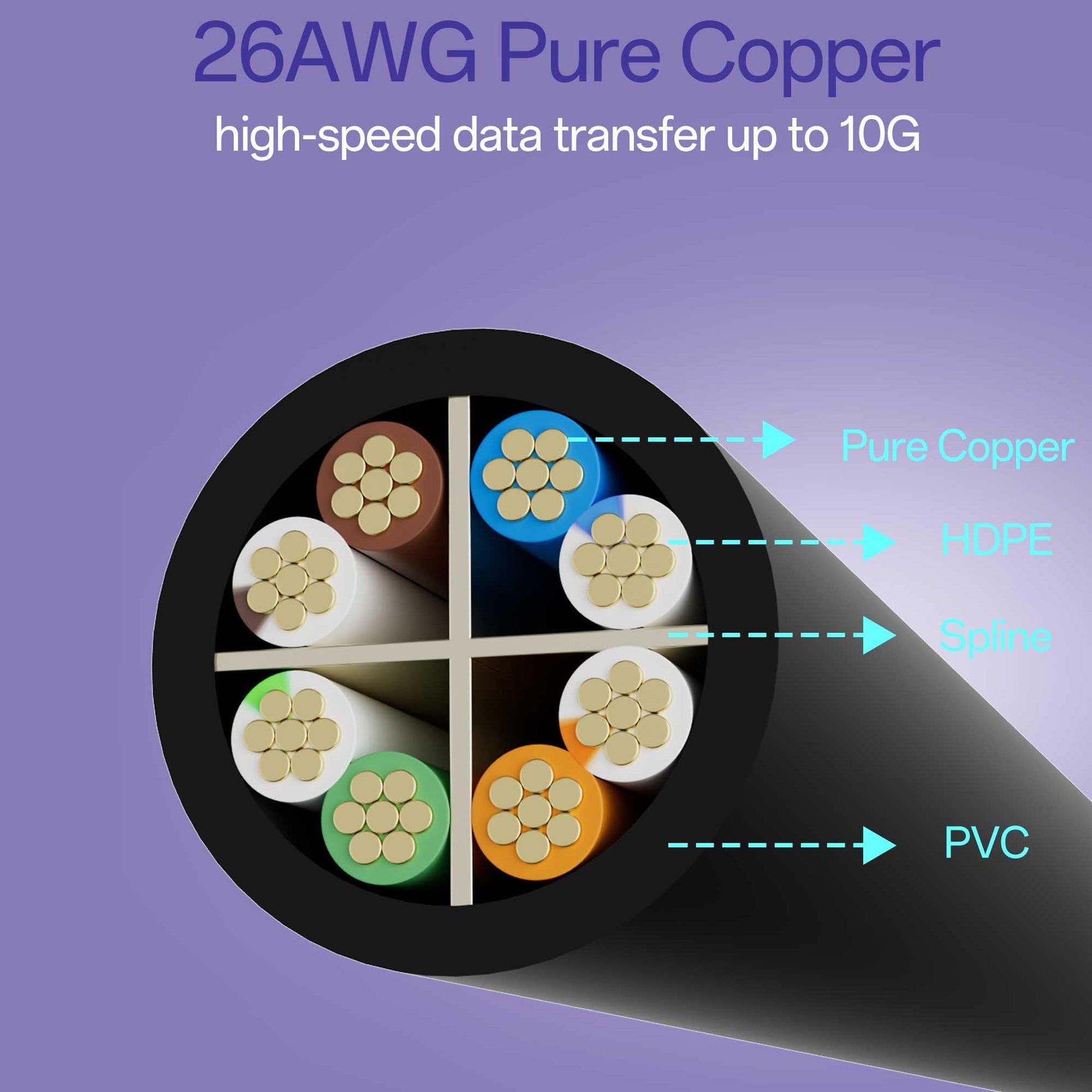 - High Performance : Cat 6 ethernet cable support up to 10 Gbps and 550 Mhz application. Cat6 patch cable are made of 26 AWG pure copper with reliable performance. Ethernet cables compliant with ANSI TIA 568.2 D standard.