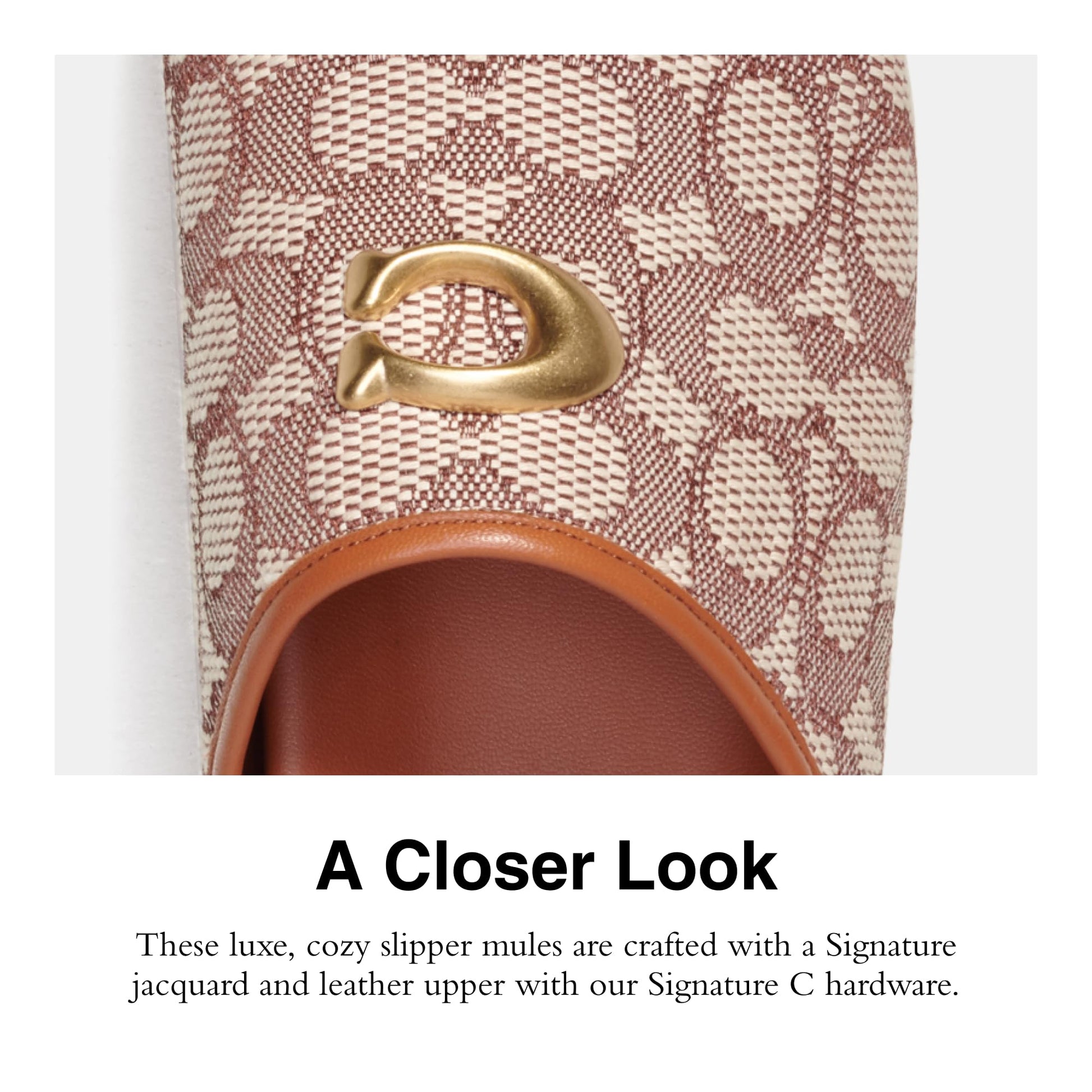 - Signature Jacquard: Cozy mules for women crafted with our signature textile jacquard and leather upper & finished with our signature sculpted "C"
