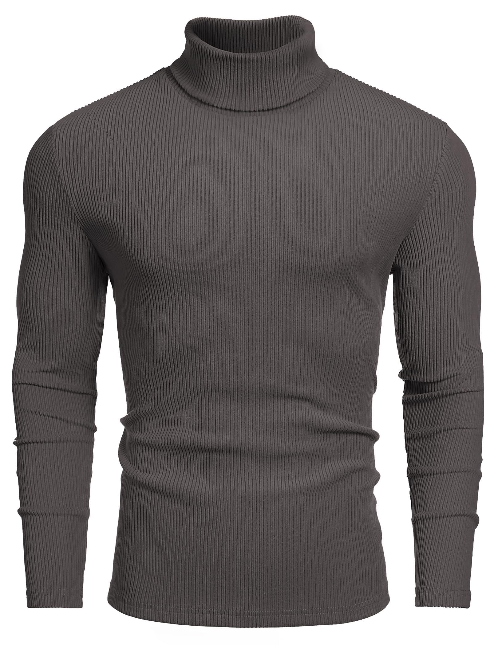 COOFANDY Mens Knitted Turtleneck Long Sleeve Turtle Neck Ribbed Pullover Sweater Thermal Casual High Neck Dark Gray