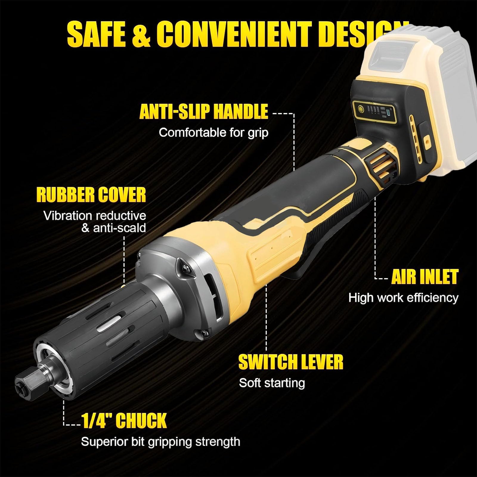 Cordless Die Grinder Compatible with DEWALT 20V, Brushless Motor 20000 RPM, 1/4" Precision Chuck, Compact Design, Variable Speed electric die grinder for Metal/Wood Grinding/Plastic (Tool Only)
