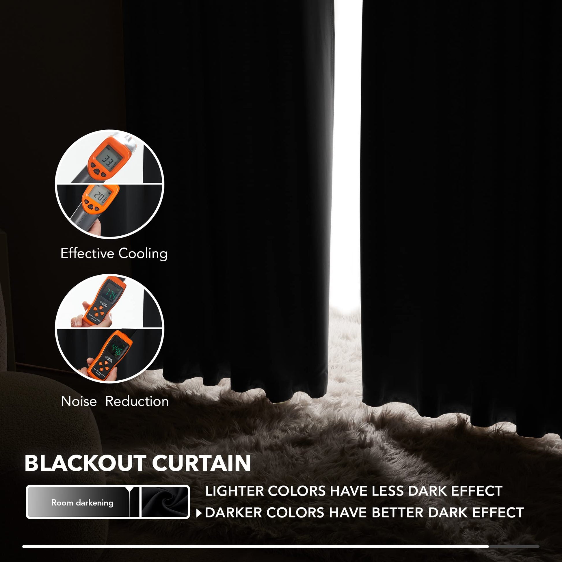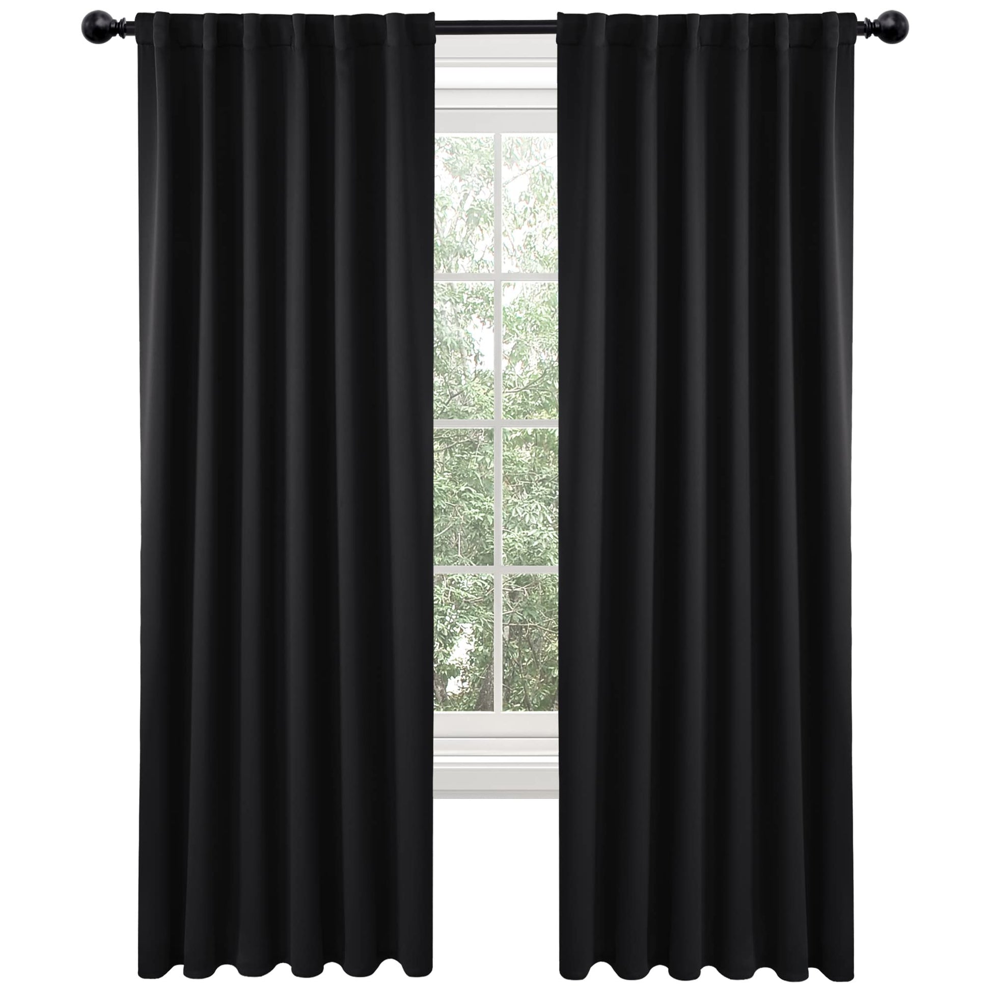 Deconovo Blackout Curtains 84 Inches Long, Black Blackout Curtains for Bedroom - 2 Panels, 52x84 Inch, Room Darkening Curtains for Living Room, Back Tab and Rod Pocket Black Curtains