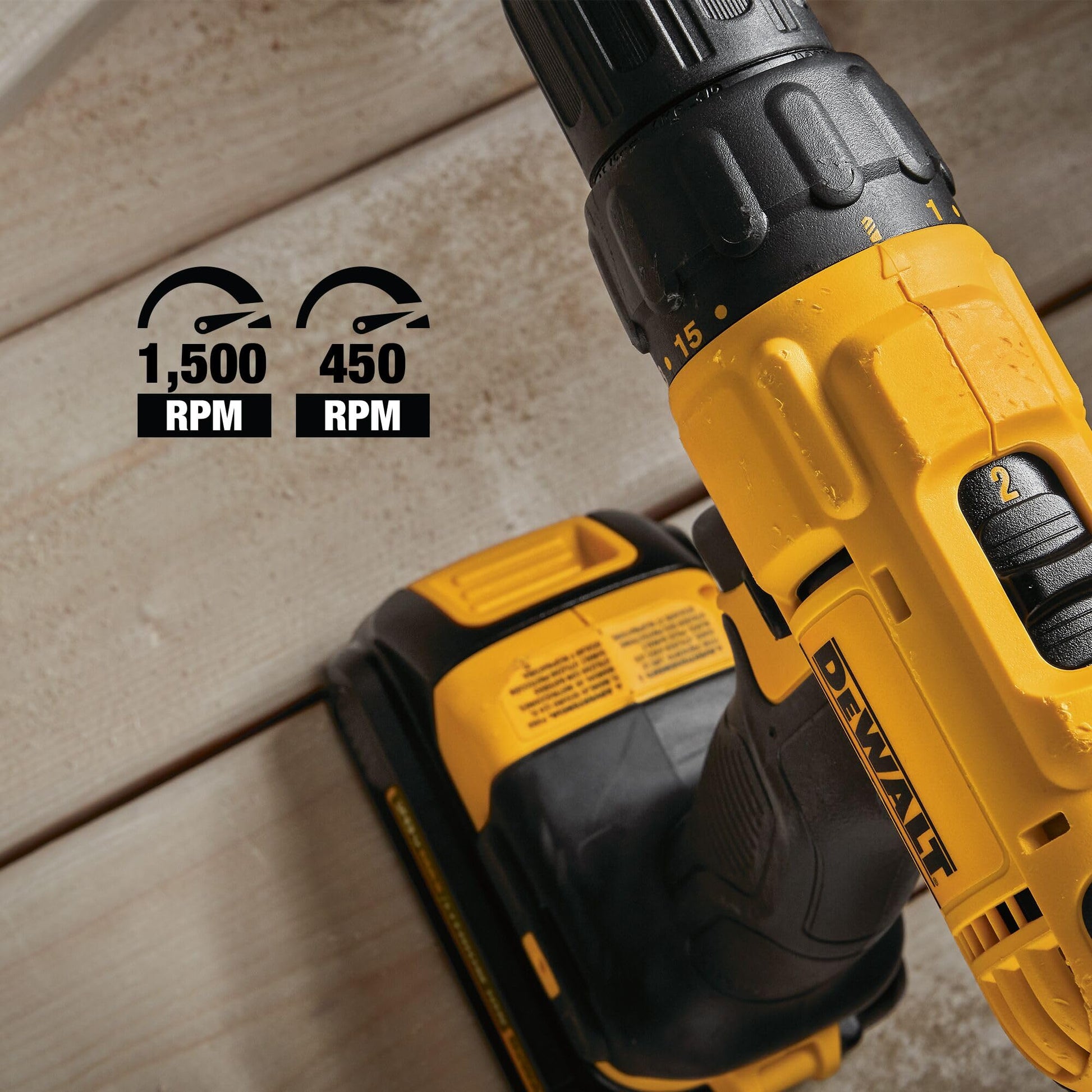 - DCD771 in cordless drill combo kit features two speed transmission (0-450 / 0-1500 RPM)