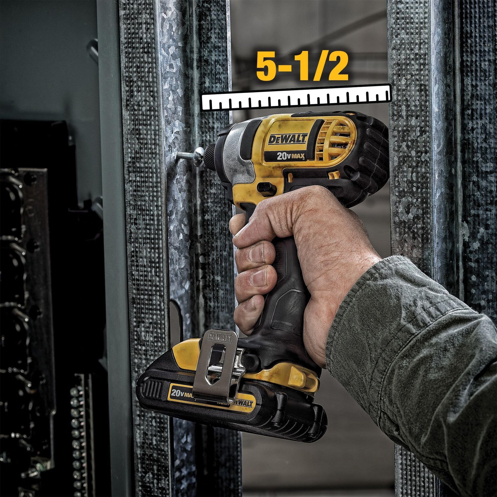 - DCF885 Compact (5.55-inch front to back), lightweight (2.8 lbs) design fits into tight areas