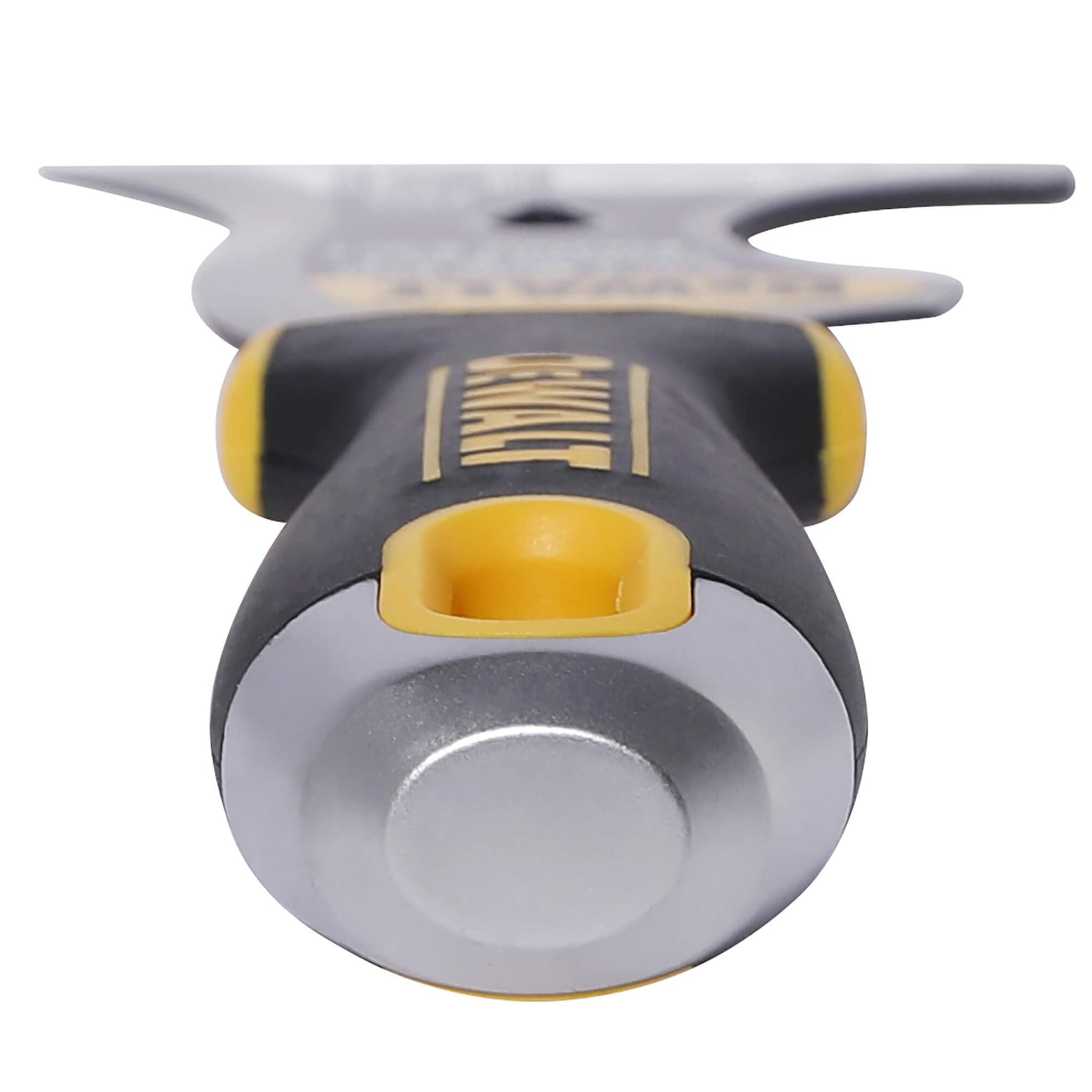 - Alloy metal hammer end for resetting drywall nails. Also adds blade protection when dropped.