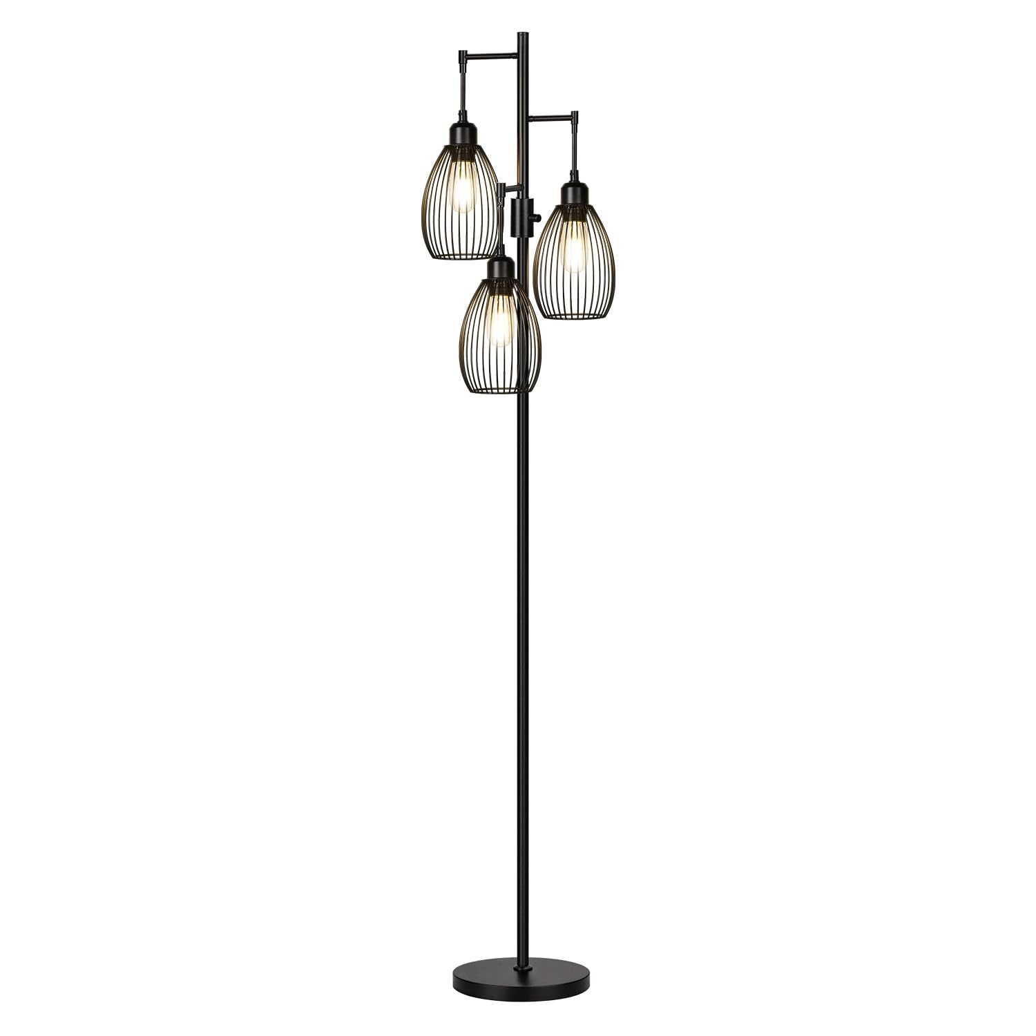 Dimmable Floor Lamp, 3 x 800LM LED Edison Bulbs Included, Farmhouse Industrial Floor Lamp Standing Tree Lamp with Elegant Teardrop Cage Tall Lamps for Living Room Bedroom Office Dining Room-Black