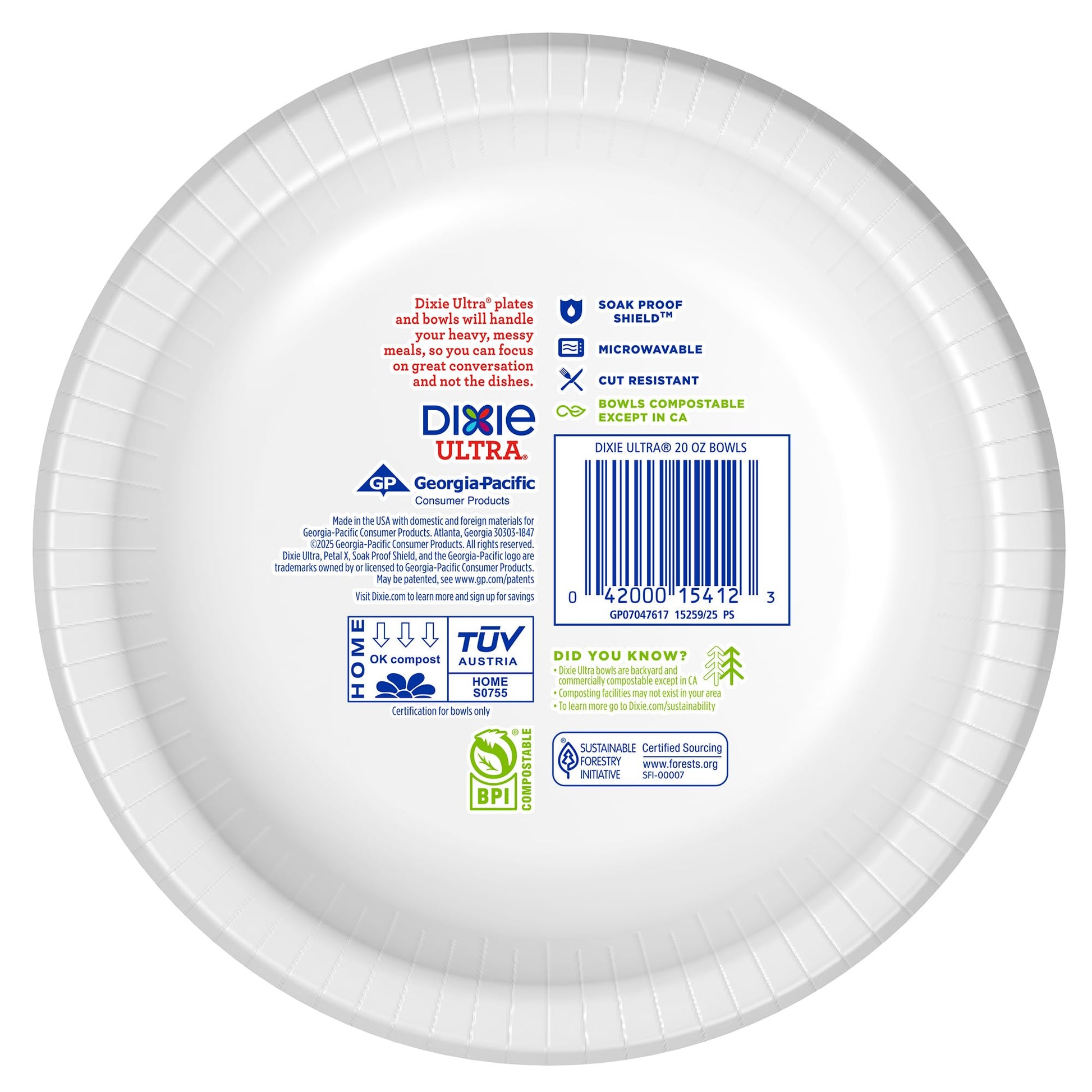 - Dixie Ultra 20oz paper bowls are built strong to handle heavy, messy meals