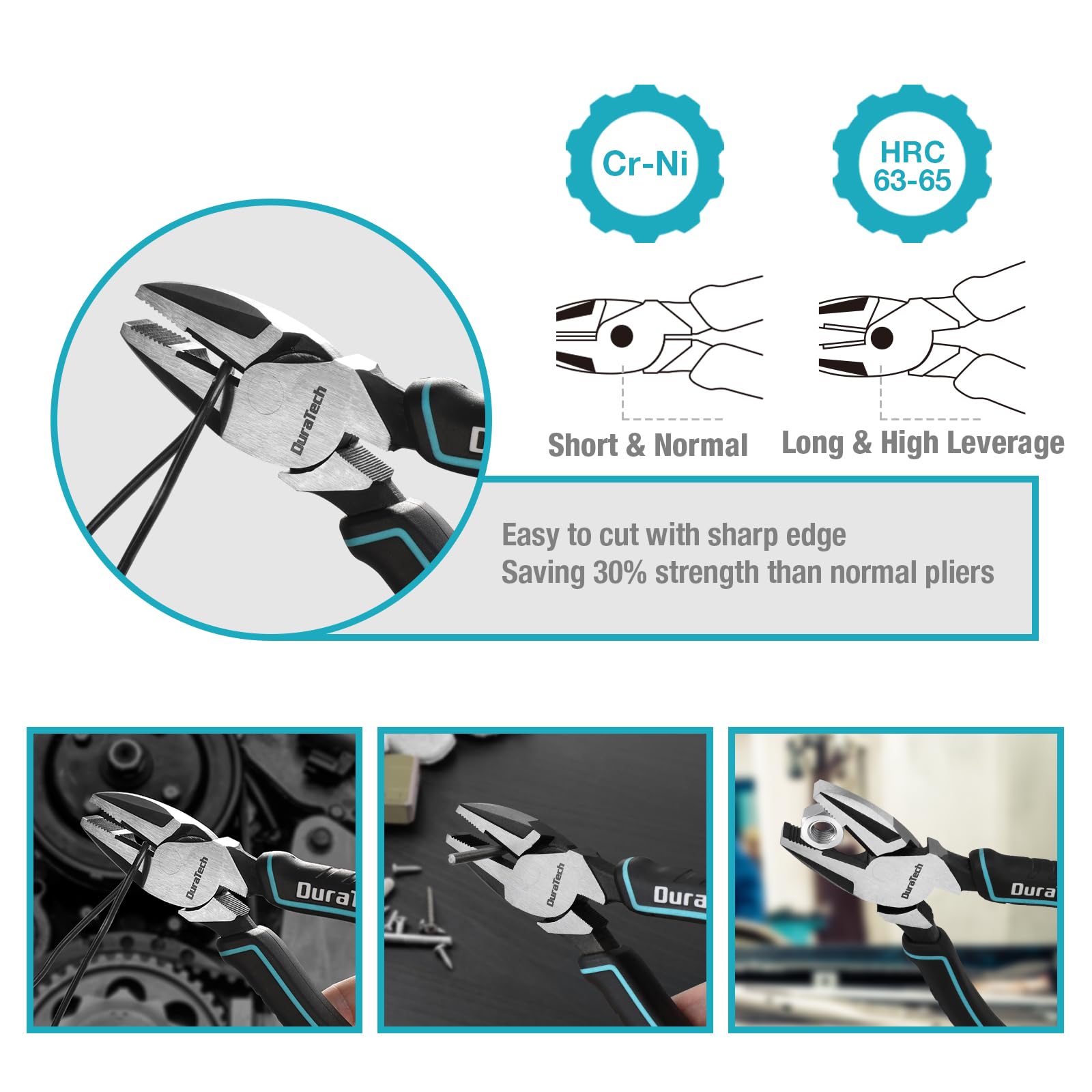 - Mechanic Pliers Tool Set: DURATECH 8-Piece Pliers Set for mechanics is great for gripping small parts, bending, shaping, twisting wire, crimping sheet metal, working with fasteners, and more. All pliers with the hardened cutting edge for cutting effortlessly