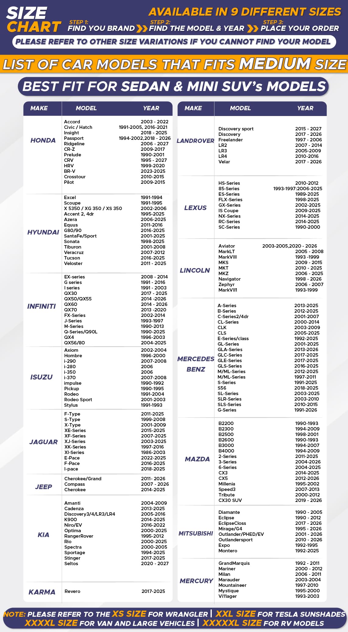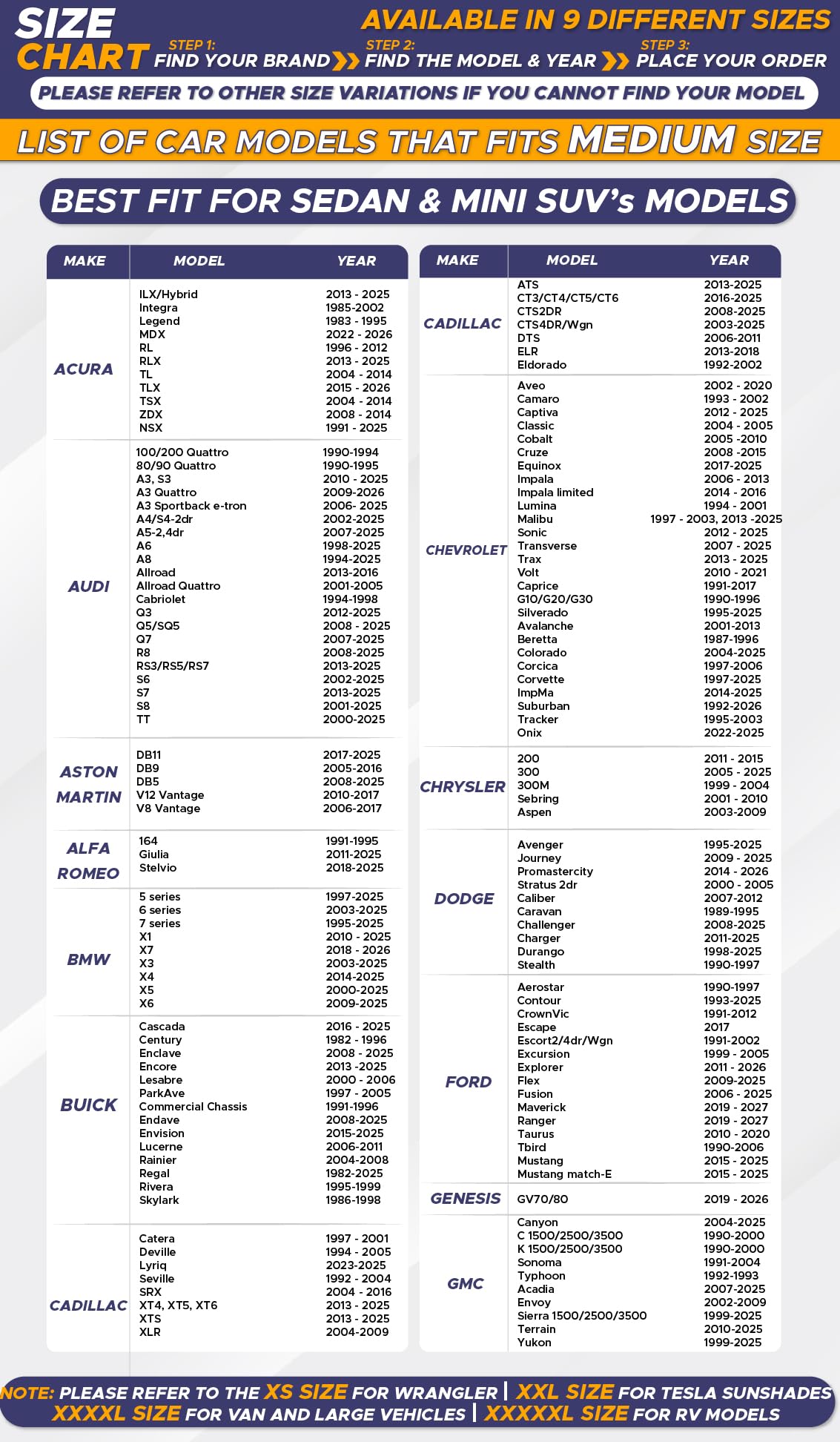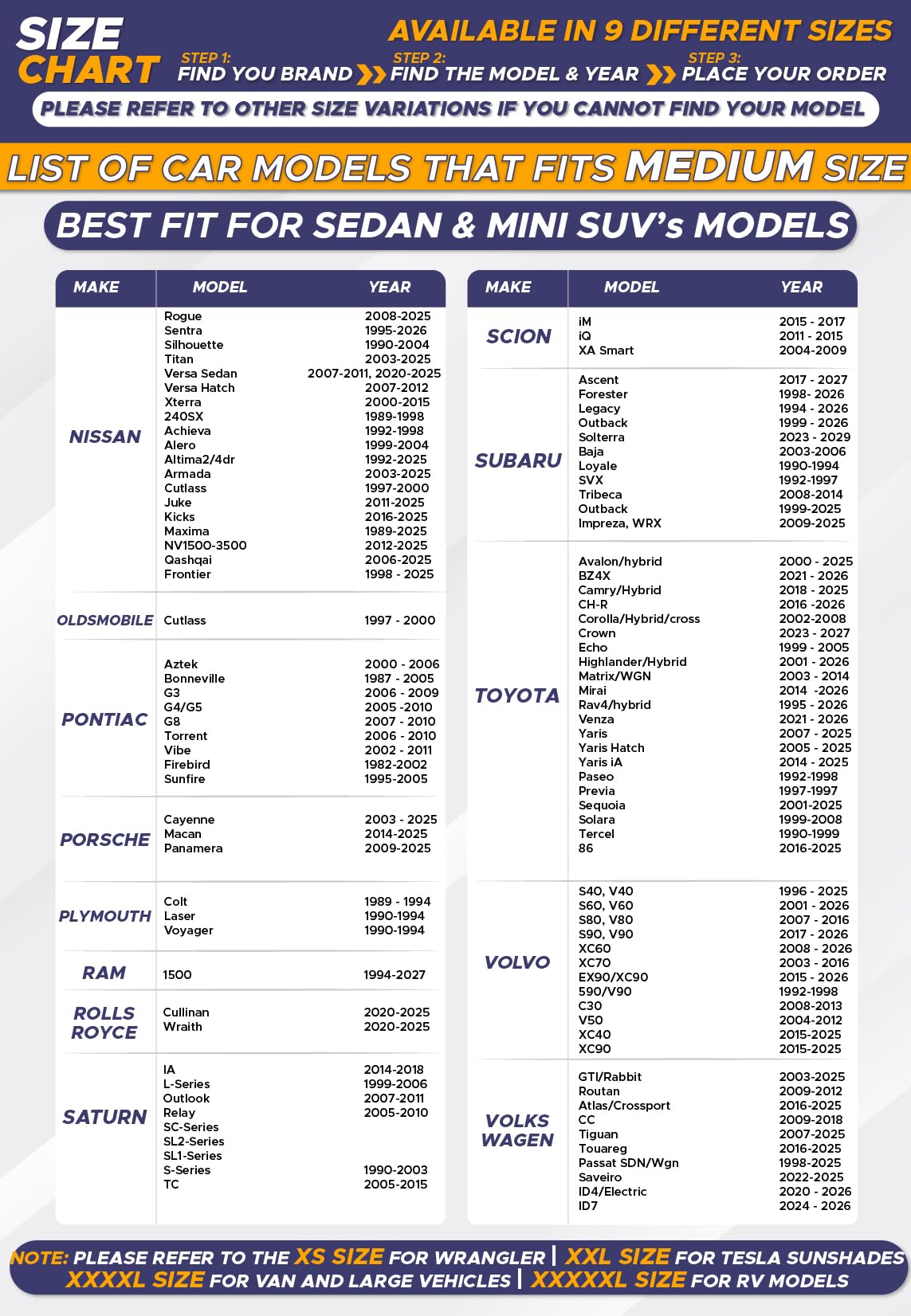 - Choose the Right Fit: Available in multiple sizes, EcoNour’s shades for windows are tailored to fit various vehicle models. Refer to the size chart to pick the best car window shade for maximum protection.