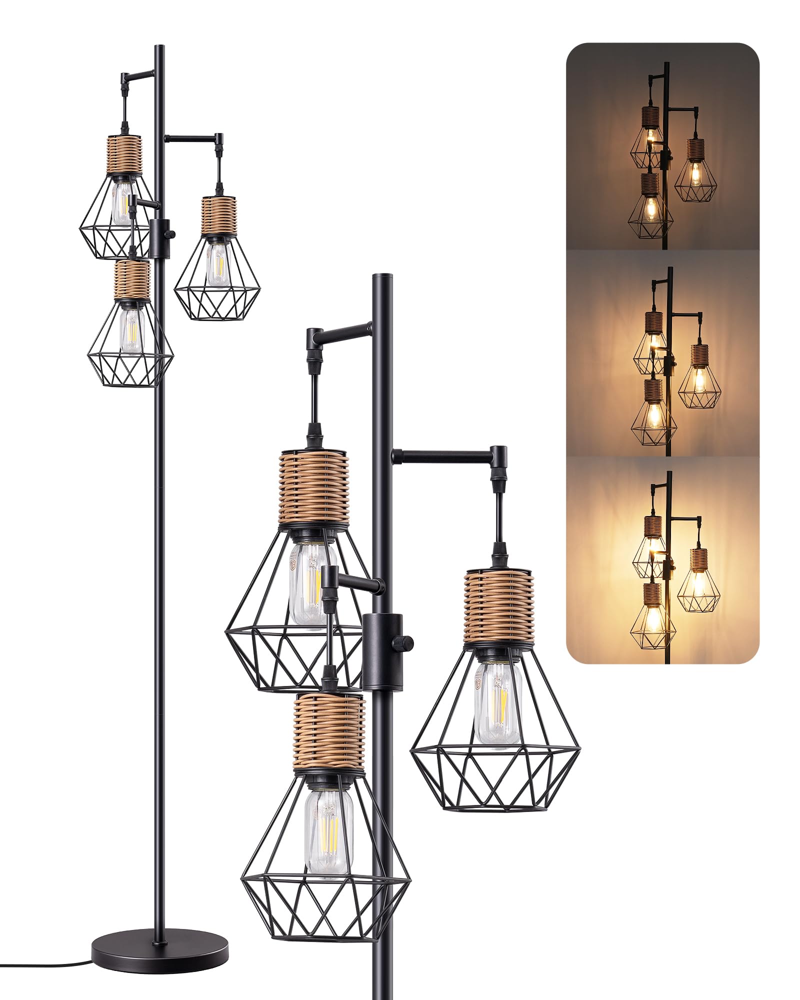 - [Elegant Farmhouse Style] Featuring a sleek black metal structure and diamond-shaped lanterns with faux rattan design, this tall tree floor lamp adds natural beauty and suits various decorative styles such as farmhouse, minimalism, and medieval retro; creating a warm artistic atmosphere, radiating a unique charm throughout your home