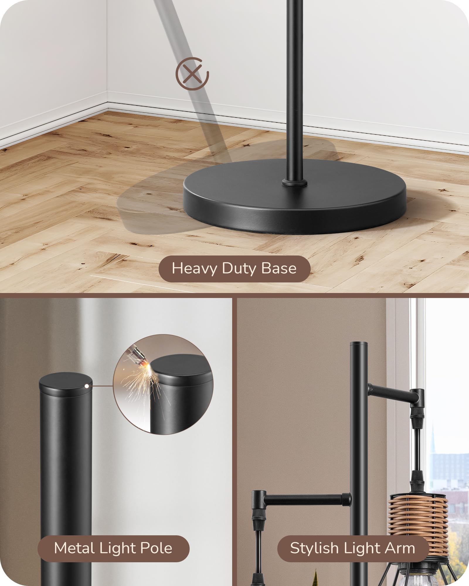 - [Sturdy & Safe] Crafted with precision, our farmhouse floor lamp prioritizes safety; its durable design provides reliable protection for you and your family, specially weighted, high-quality metal base ensures stability, eliminating concerns of tipping over even in active environments with children or pets; enjoy beautiful and safe home lighting
