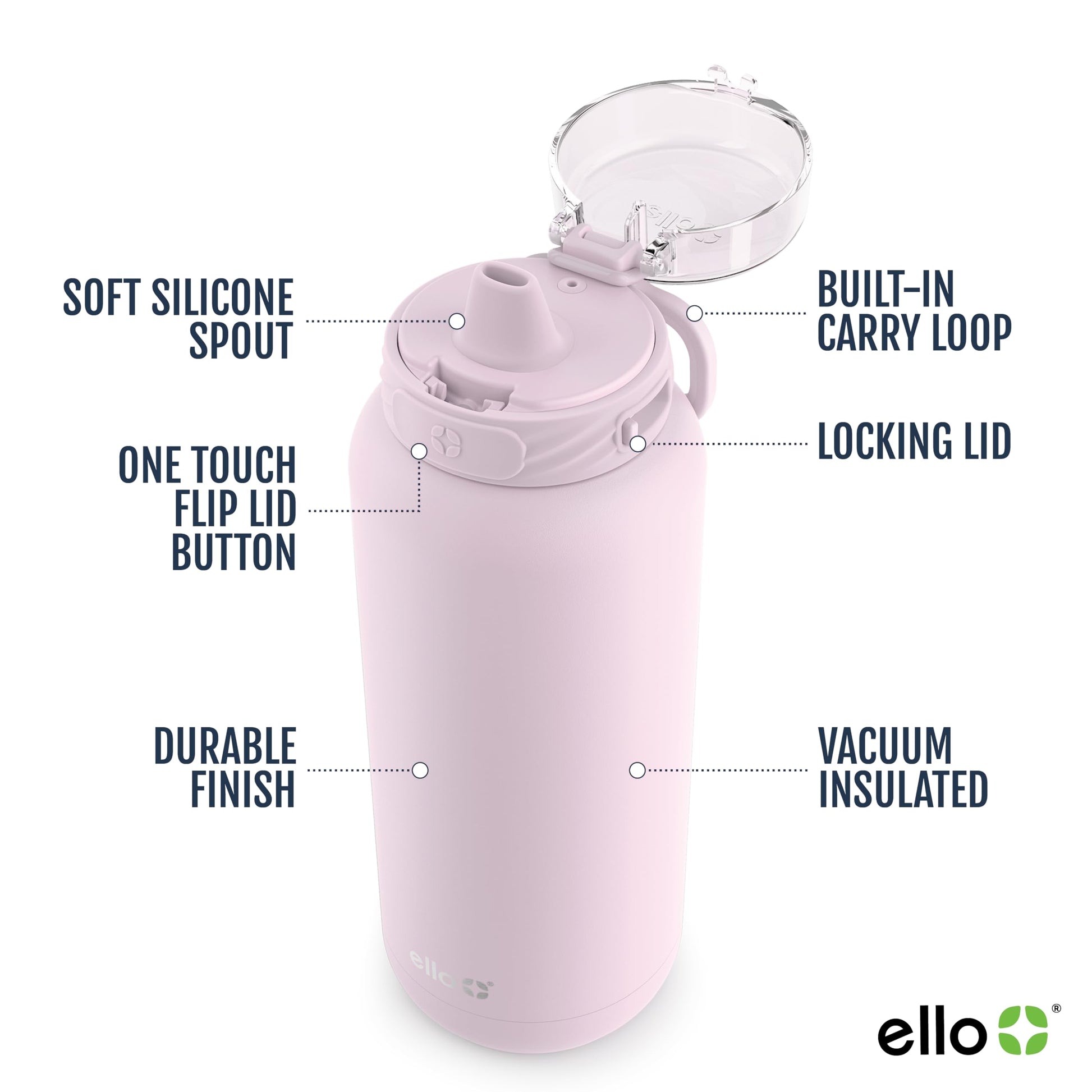 Ello Cooper Vacuum Insulated Stainless Steel Water Bottle with Soft Straw and Carry Loop, Double Walled, Leak Proof, Cashmere Pink, 32oz