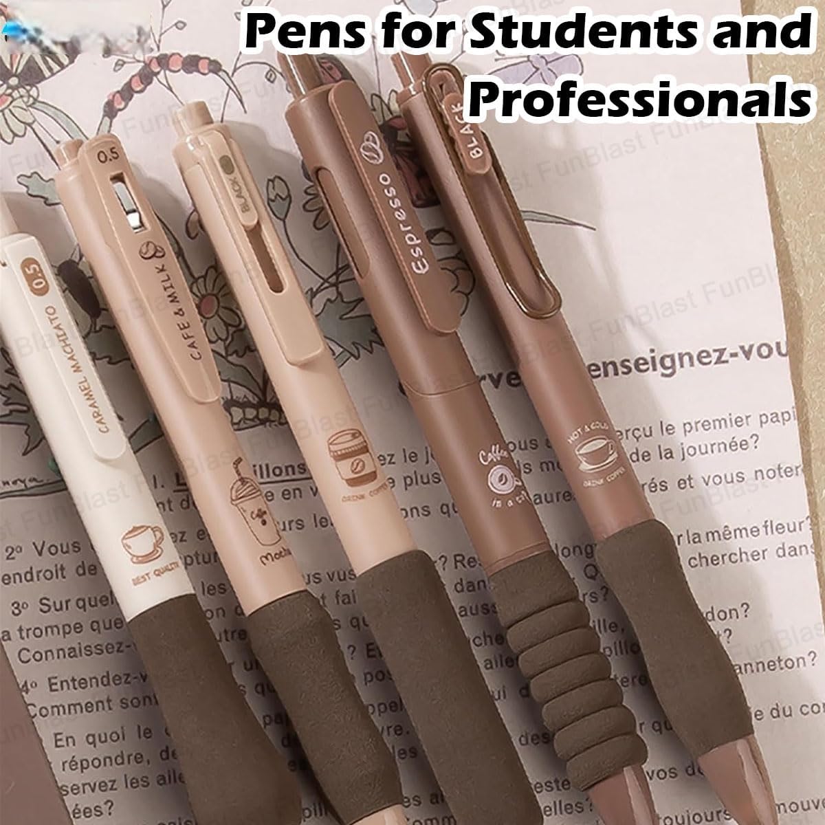 Gel Pens with Soft Grip, 5 Pack, Blue Ink, School and Office Supplies