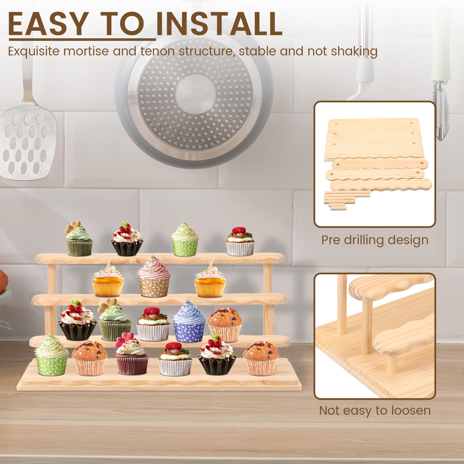 HJJWNDDNG Wooden Display Riser Stand 4 Tier Perfume Display Riser Stand, Cupcake Displays Shelf Organizer for Bedroom Bathroom Dressing Table(Log color,Four floors)