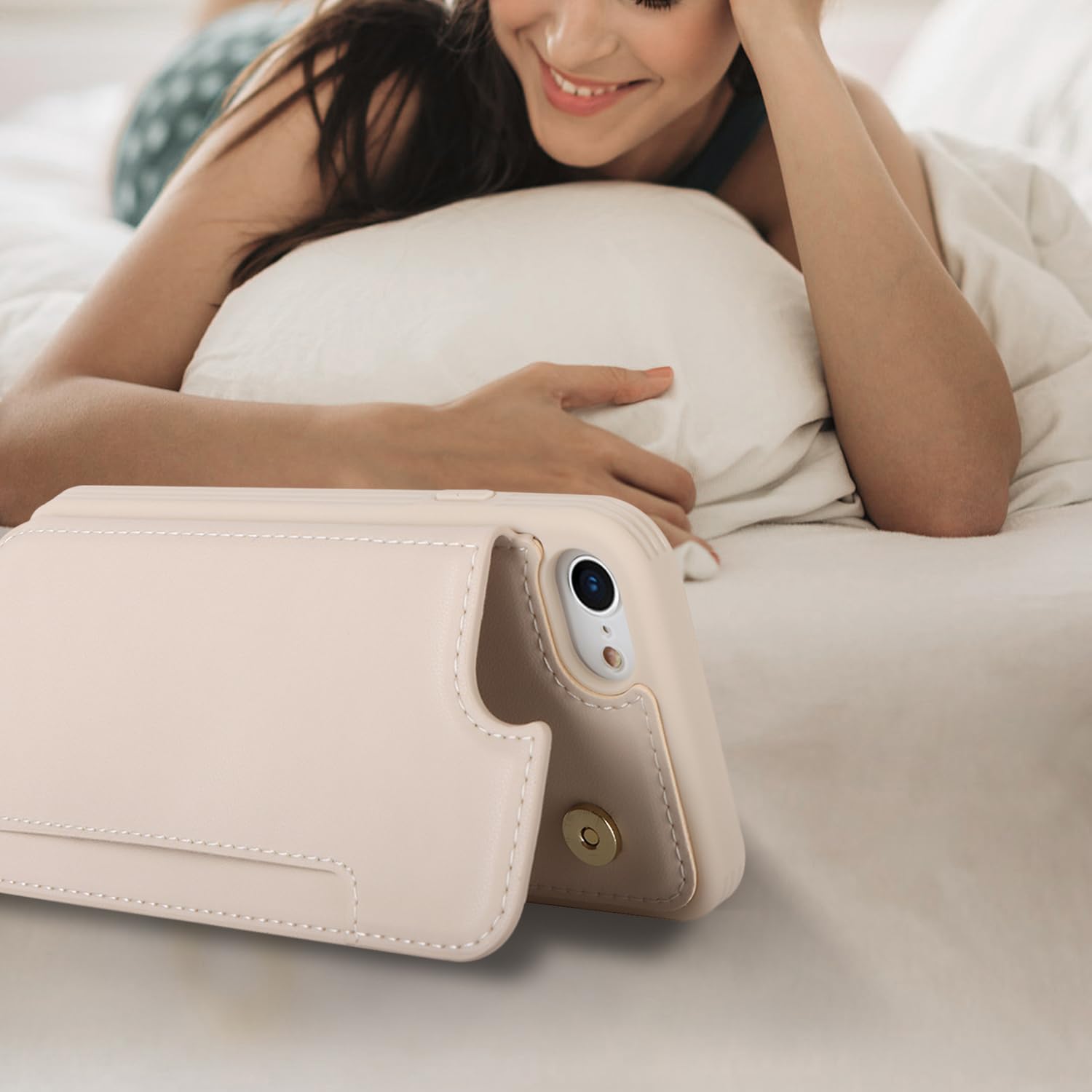 iCoverCase Compatible with iPhone SE(2022)/SE(2020)/7/8 Wallet Phone Case with Card Holder for Women Men, RFID Blocking Card Slots PU Leather Protective Case (Beige)