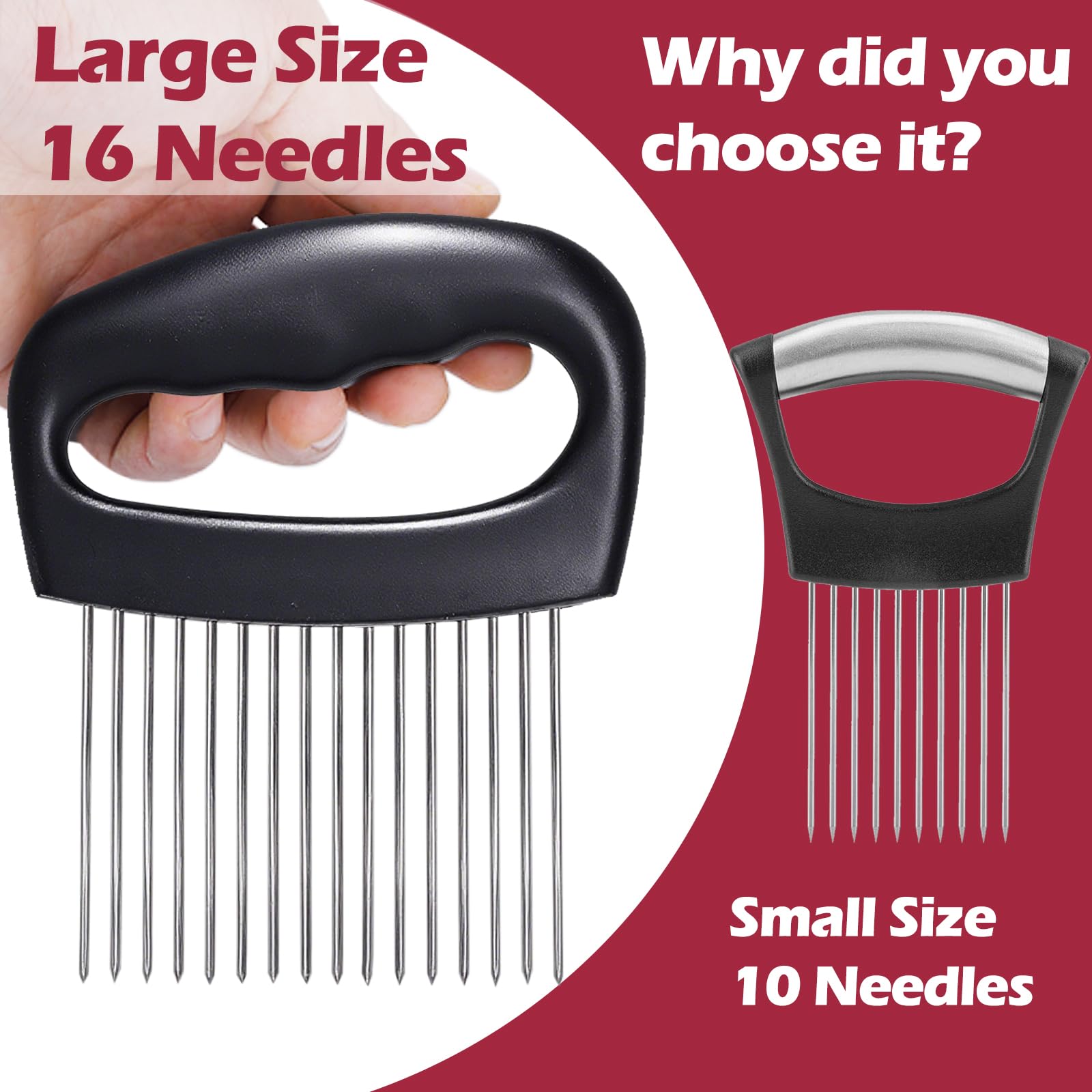 JAYVAR Extra-Large Onion Holder for Slicing, Onion Cutter Vegetable Chopper, Extra-Large Tomato Slicer with 16 Long Needles, Stainless Steel Tomato Potato Slicer, Meat Tenderizer, Food Slicing Guide
