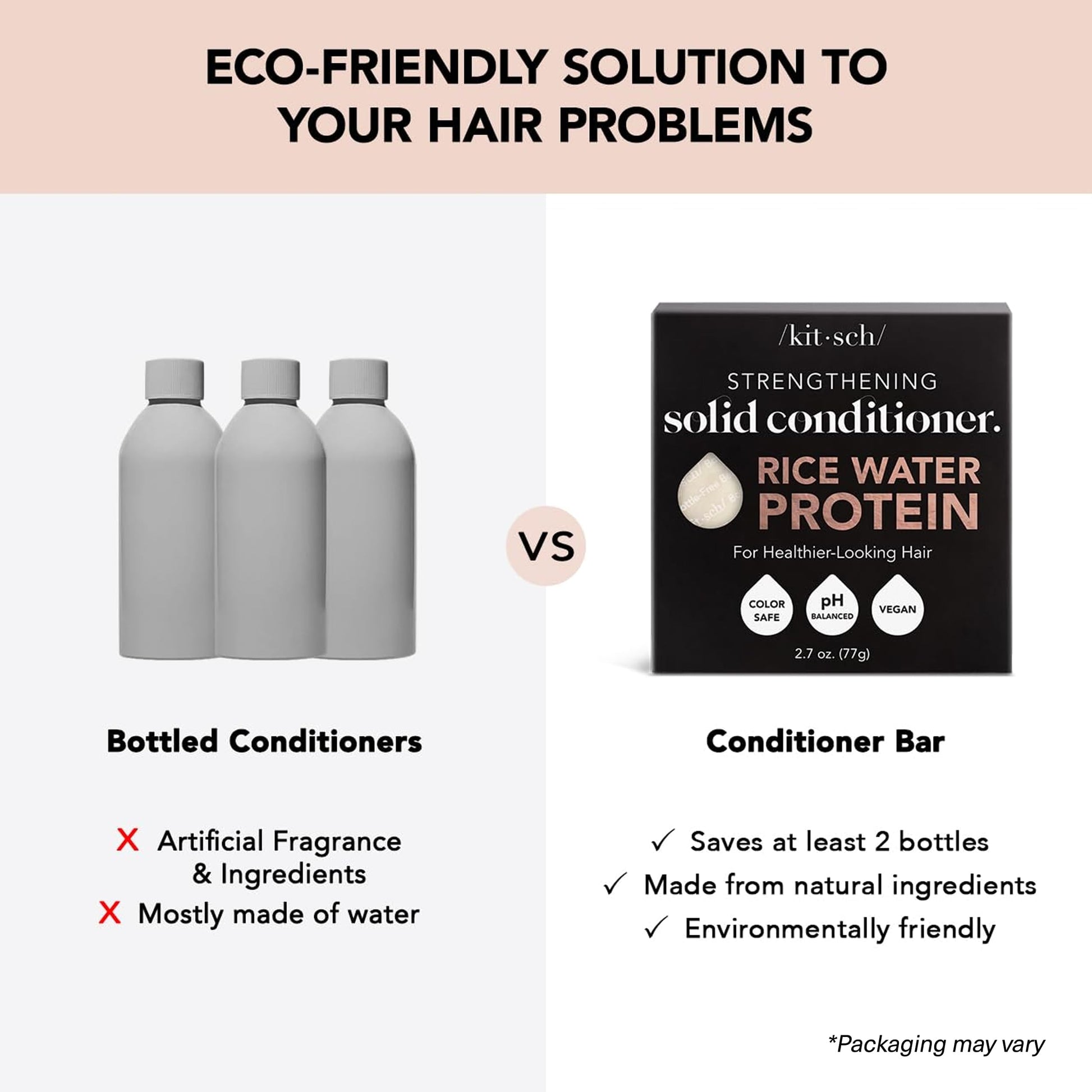 Kitsch Rice Water Shampoo & Conditioner Set - Solid Shampoo & Conditioner Bar with Protein for Strengthening Hair & Damage Repair - Paraben, Sulfate and Silicone Free - Nourishing Hair Care - 2 pack