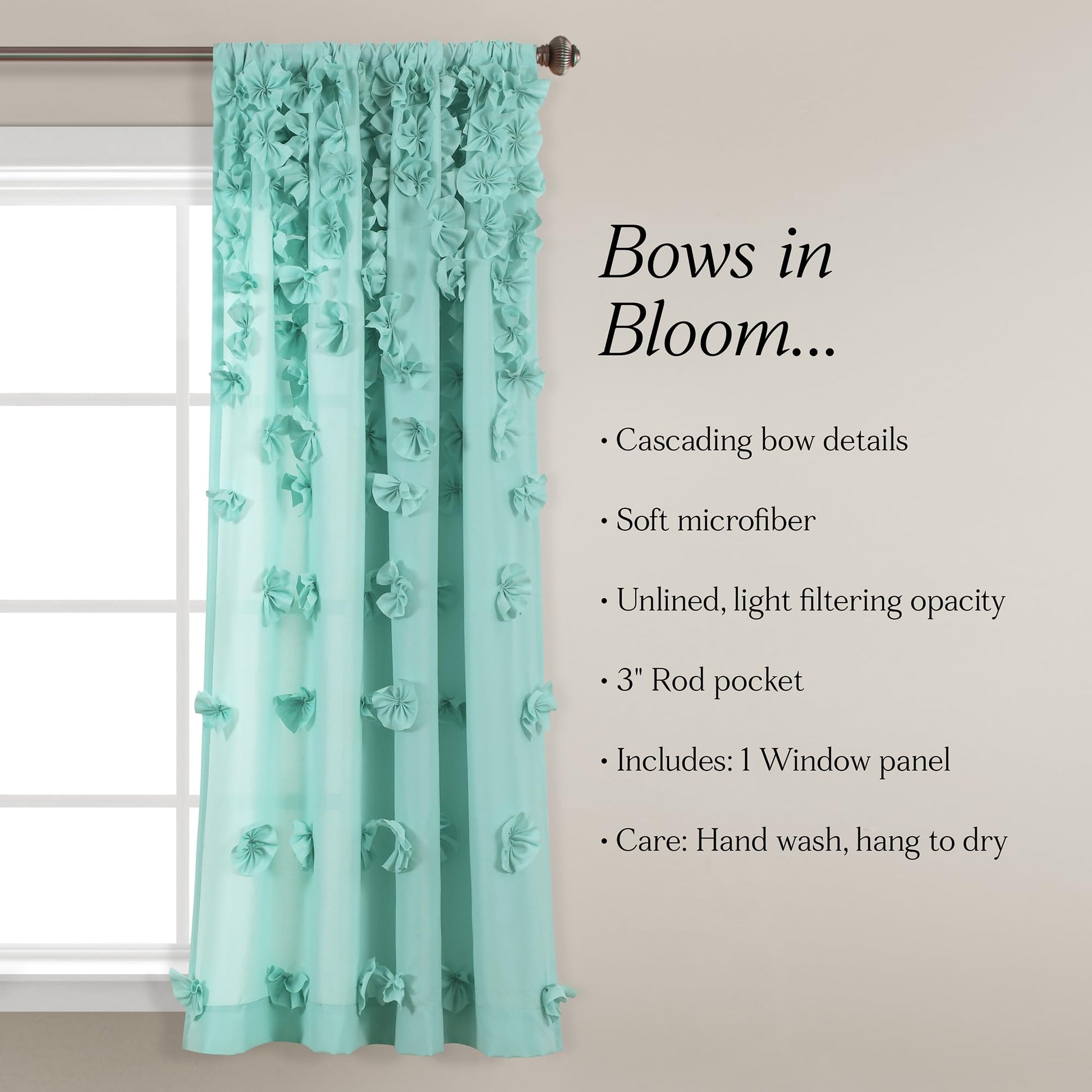 - Bow Curtains: Lighten up your space with the charm and textured design of the Riley Light Filtering Window Curtain Panel. Featuring beautiful handmade bows flowing down from the top, these window curtains add a delicate, feminine touch to your home.