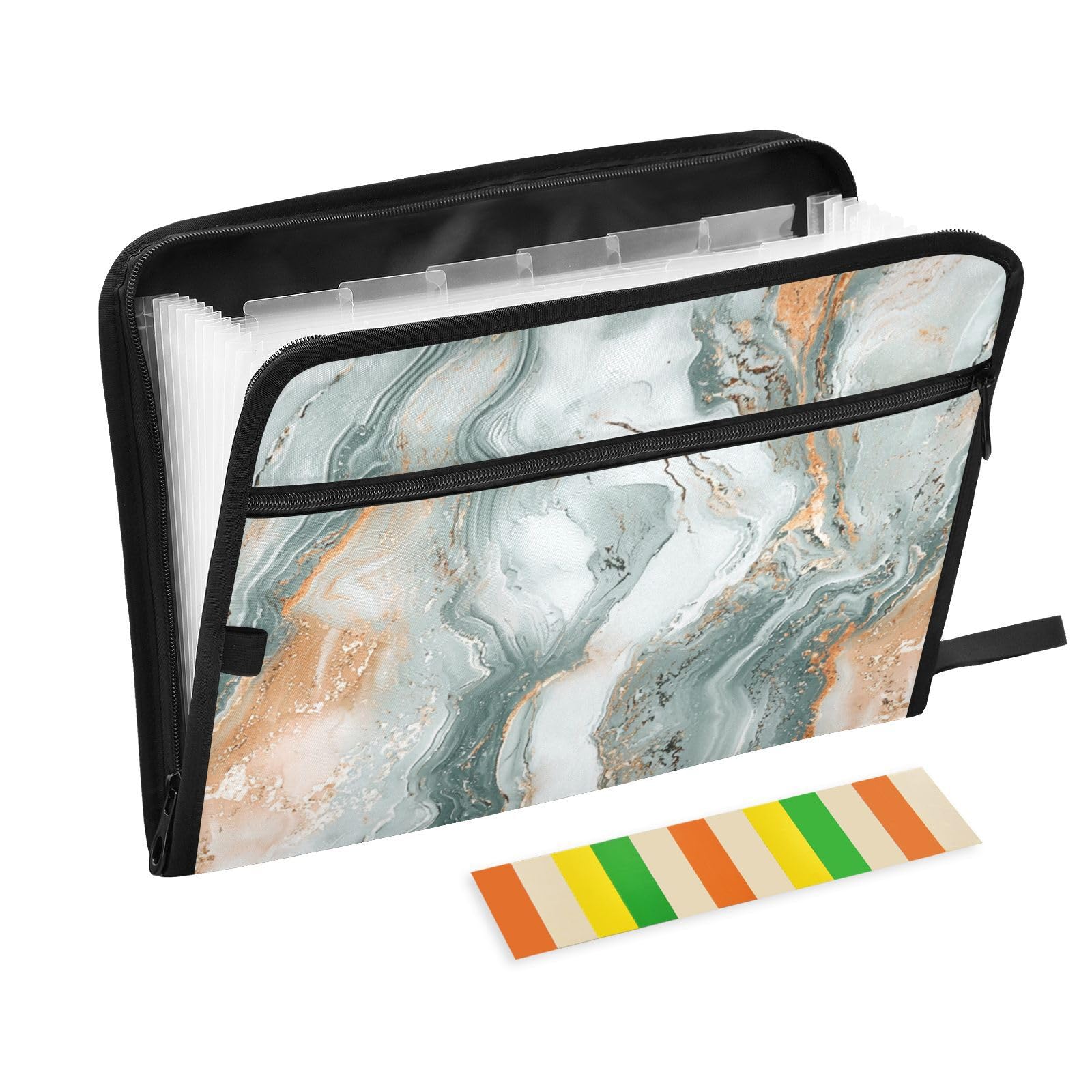 - 【Adhesive Labels & Extra Front Pocket】Comes with a sheet of colorful sticky labels for marking, identifying the contents of file folders quickly. A roomy extra pocket with zipper closure added on the front, designed for taking more school office supplies like pens, eraser, calculator, or receipts, invoices papers storage with this expandable file folder organizer.
