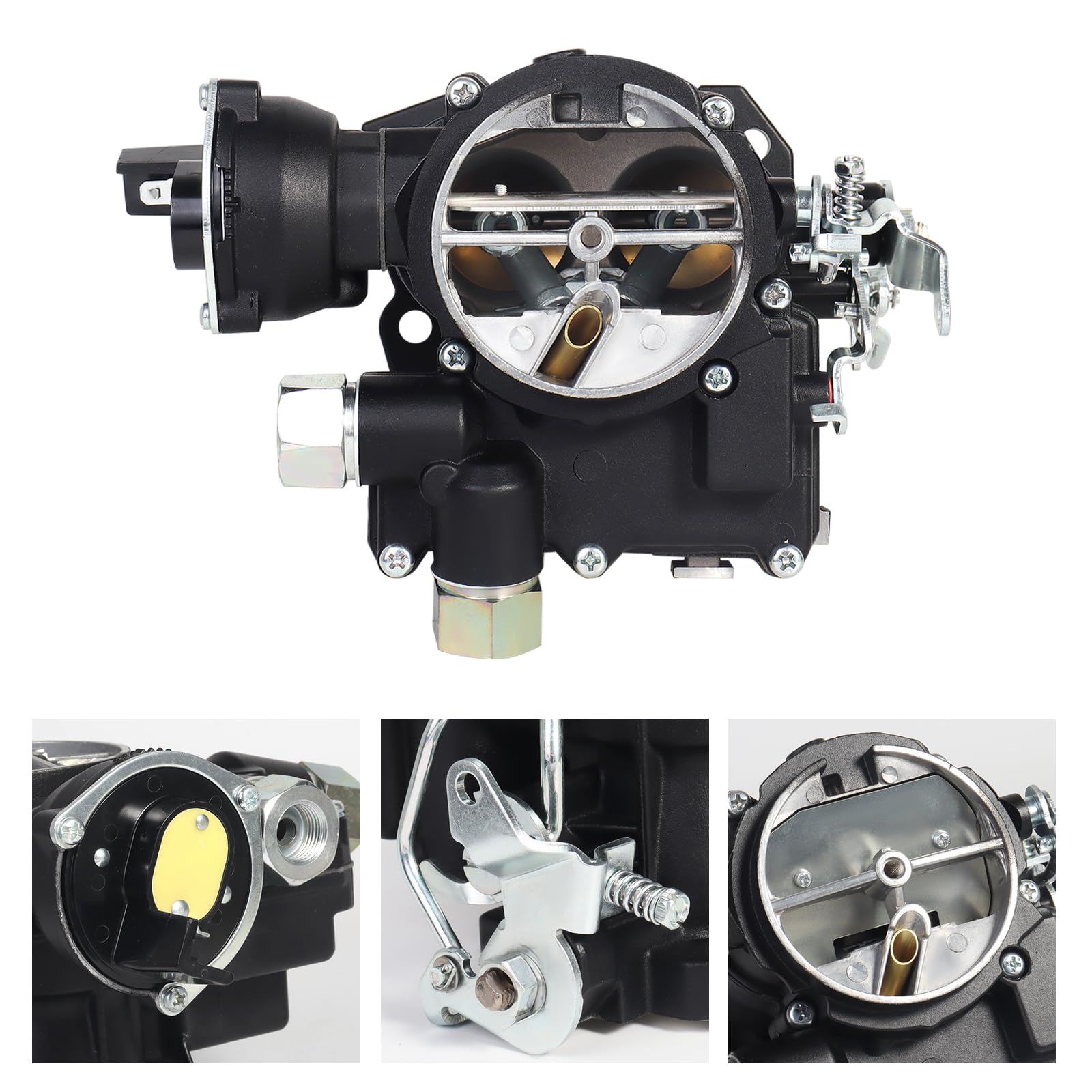 - 【Package】1x Black 2 Barrel Mercruiser Carburetor kit come with Electric Choke and Side Fuel Inlet; with Short Linkage installed and the long Linkage in the box, 3 x Gaskets, 1x Brass fitting, 1 x Replacement throttle arm, 4 x Jets, 1 x Air filter bolt, 1 x shim, 7 x nuts