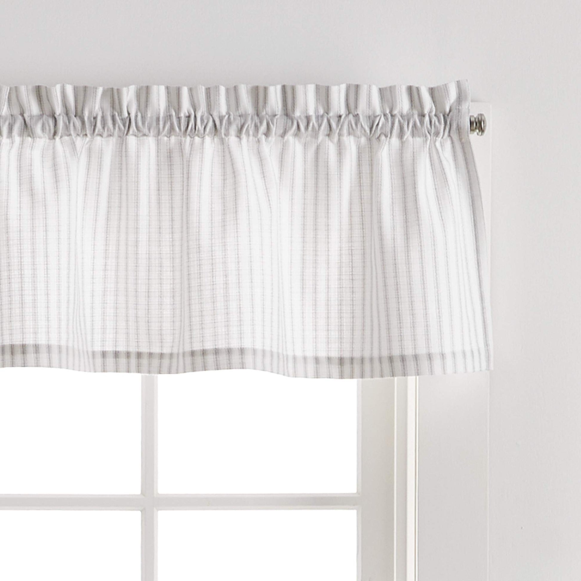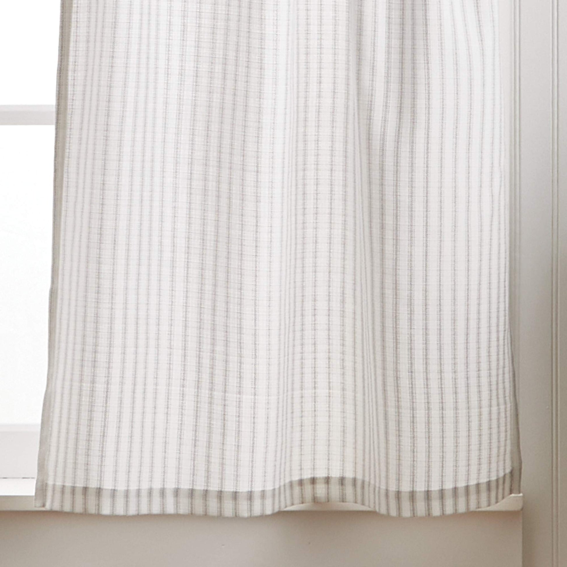 Martha Stewart Ticking Stripe 3-Piece Window Curtain Valance and Tiers Set, White Grey