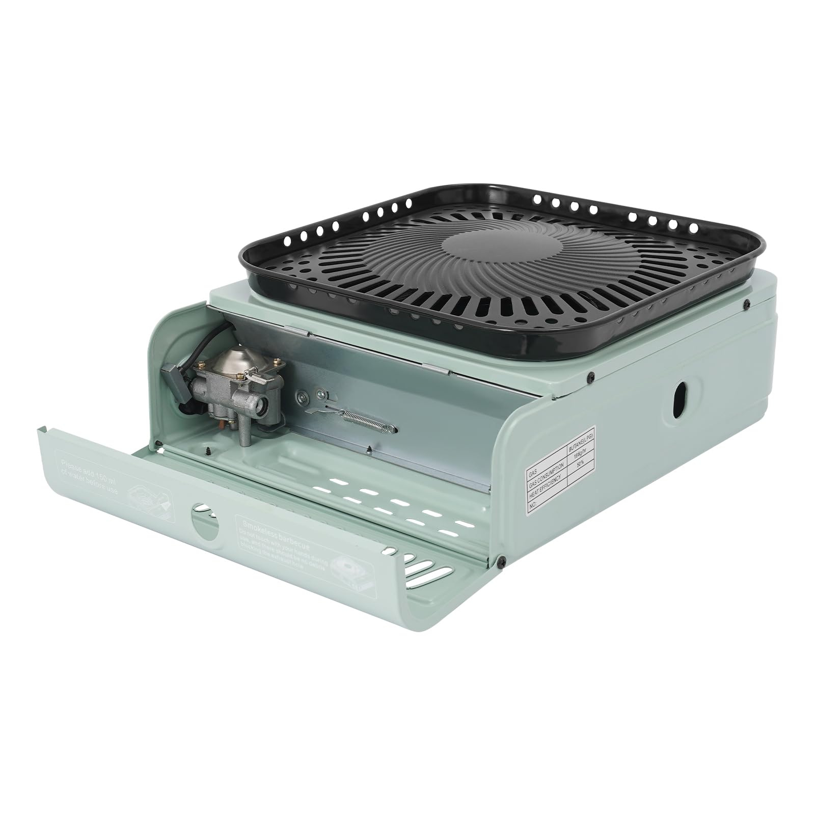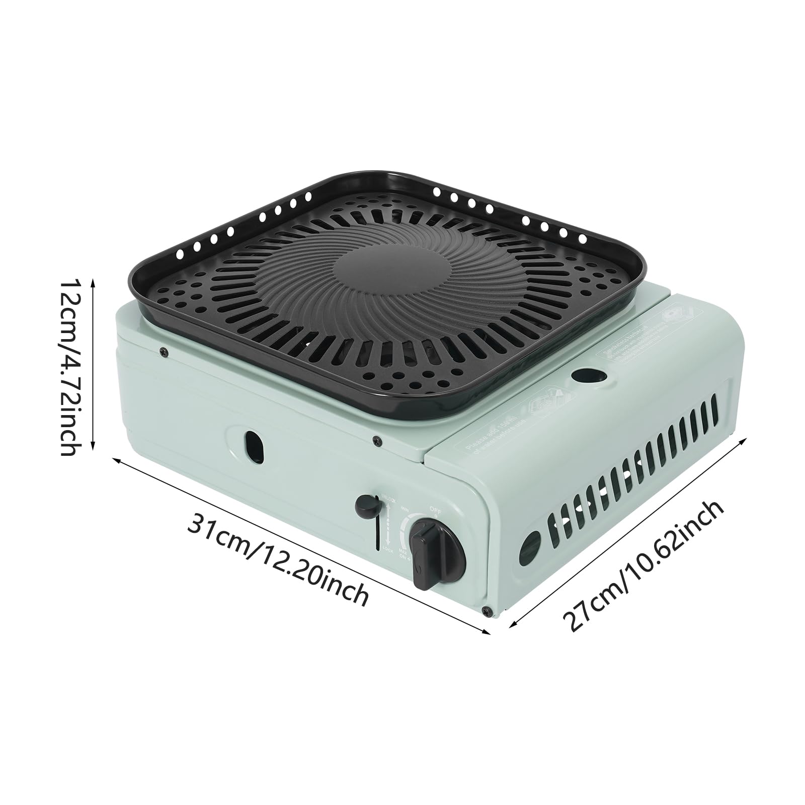 - [Thoughtful Design]: This propane stove comes with a large grill tray, which makes it possible for you to enjoy barbecuing easily on the balcony or outdoors. The built-in grease collection groove makes the barbecue process cleaner. In addition, it is equipped with a practical clamp that allows you to easily pick up the grill tray and prevent burns.