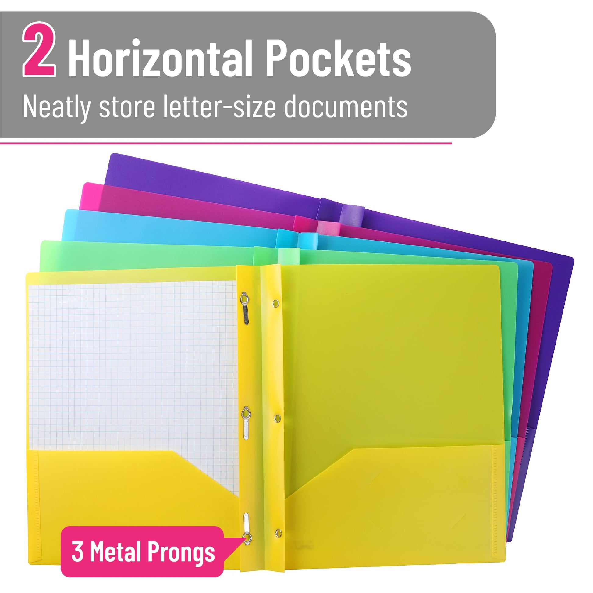 - This package includes 5 letter-sized folders with two pockets and 3-hole punch prong fasteners, perfect for school paperwork, forms, and homework.