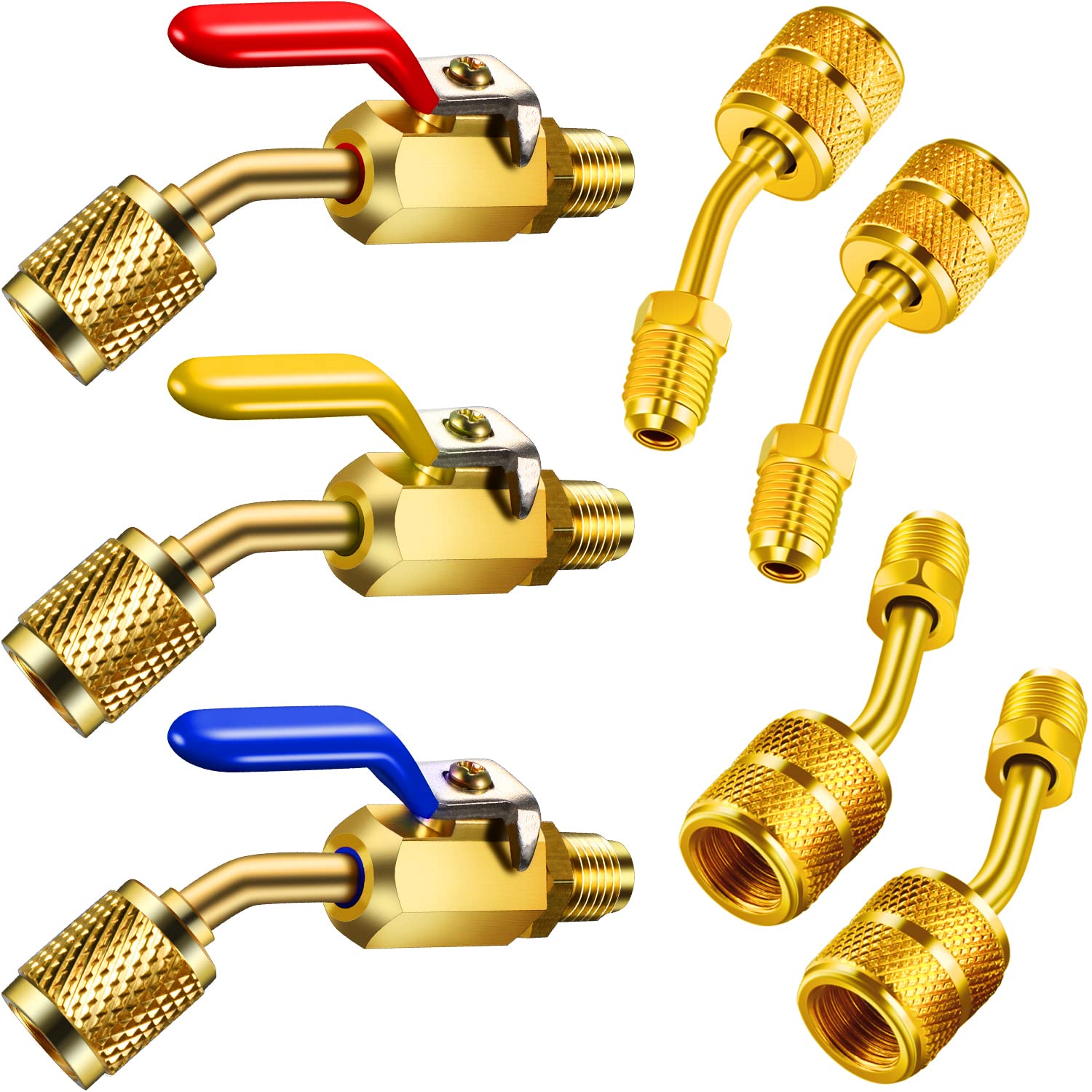 Mudder 7 Pieces Air Conditioning Refrigerant Angled Compact Ball Valve 1/4 Inch for R410A R134A R12 R22 HVAC and R410A Adapter 5/16 Inch Female to 1/4 Inch Male Flare for Mini Split System