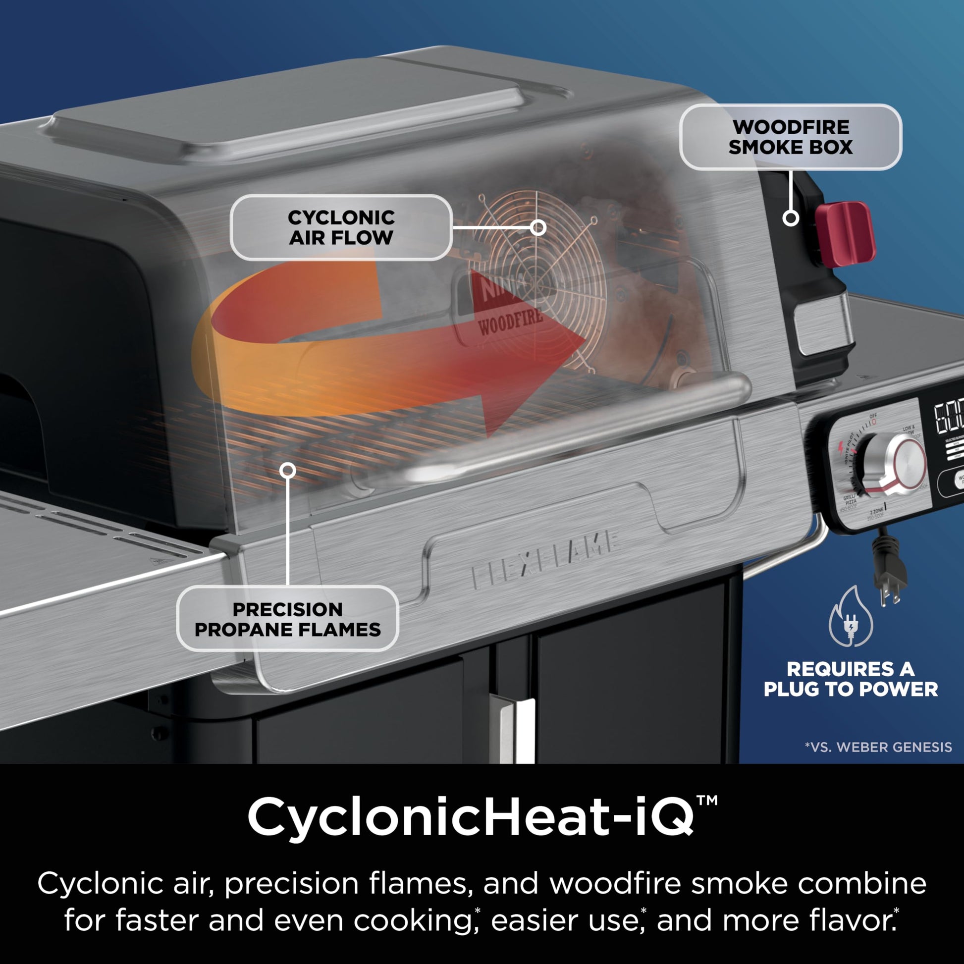- CYCLONICHEAT-iQ: Faster, even cooking, easier to use, and more flavor. (vs. Weber).