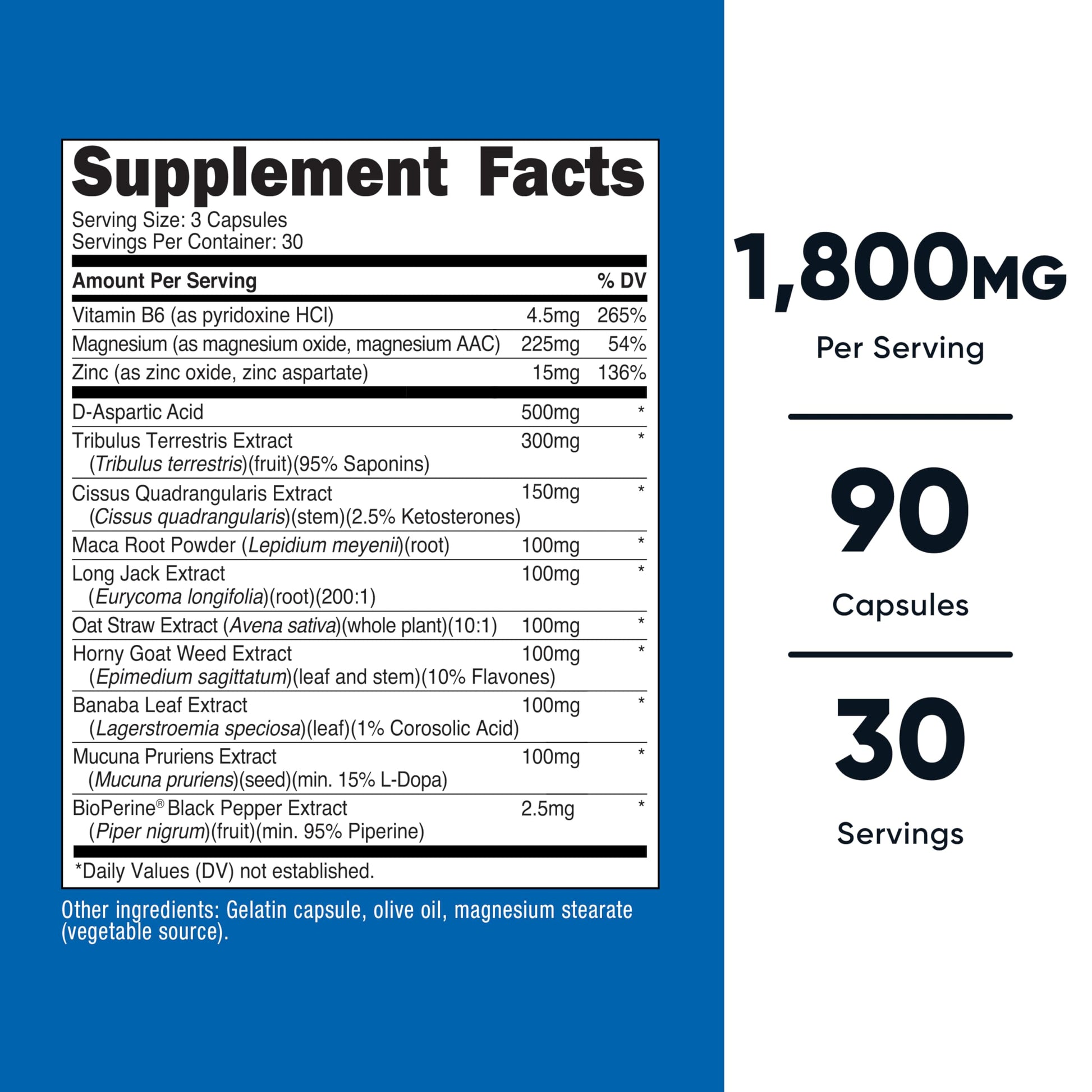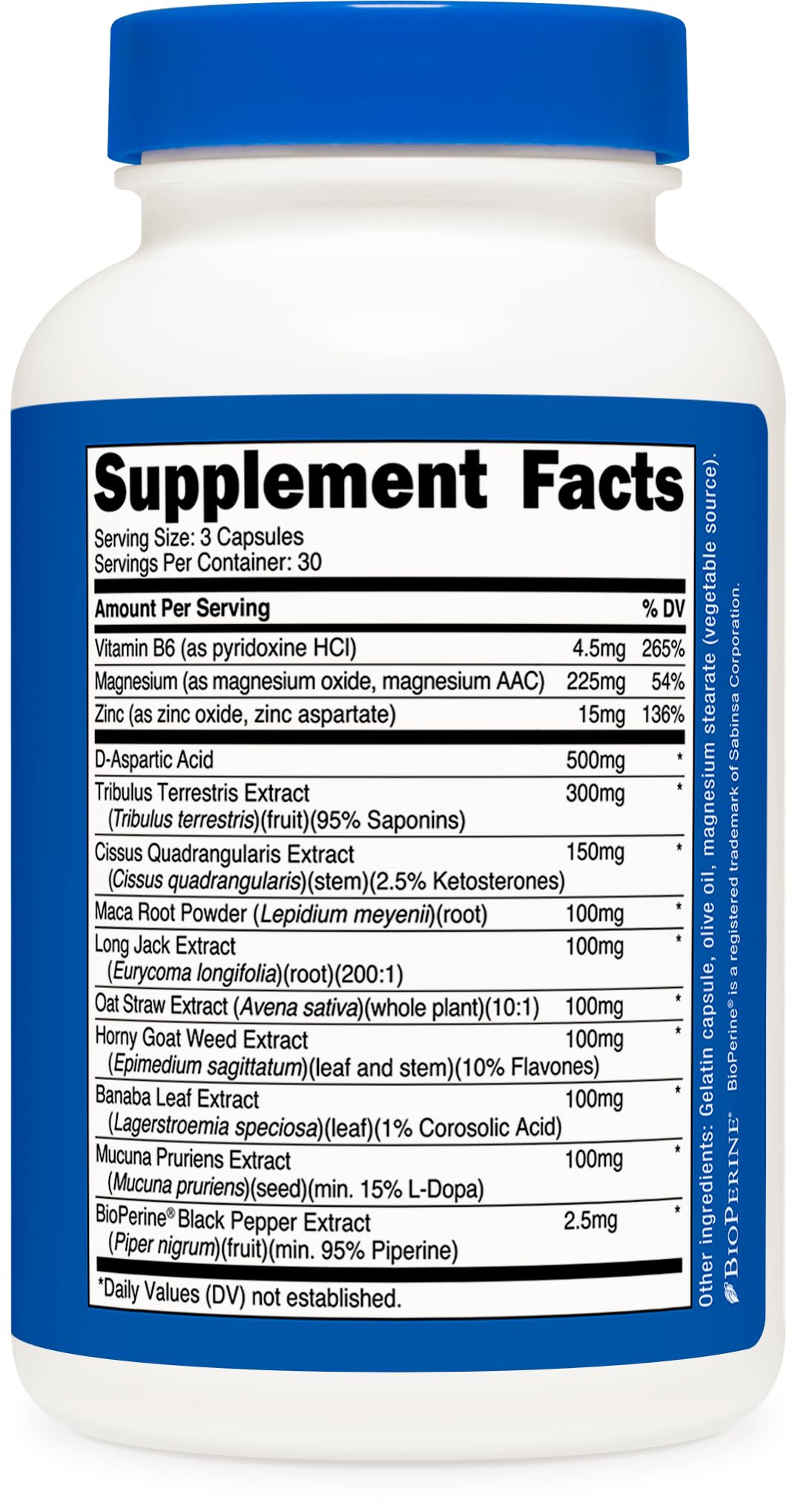 - Includes D-Aspartic Acid, Zinc, Magnesium and Vitamin B6