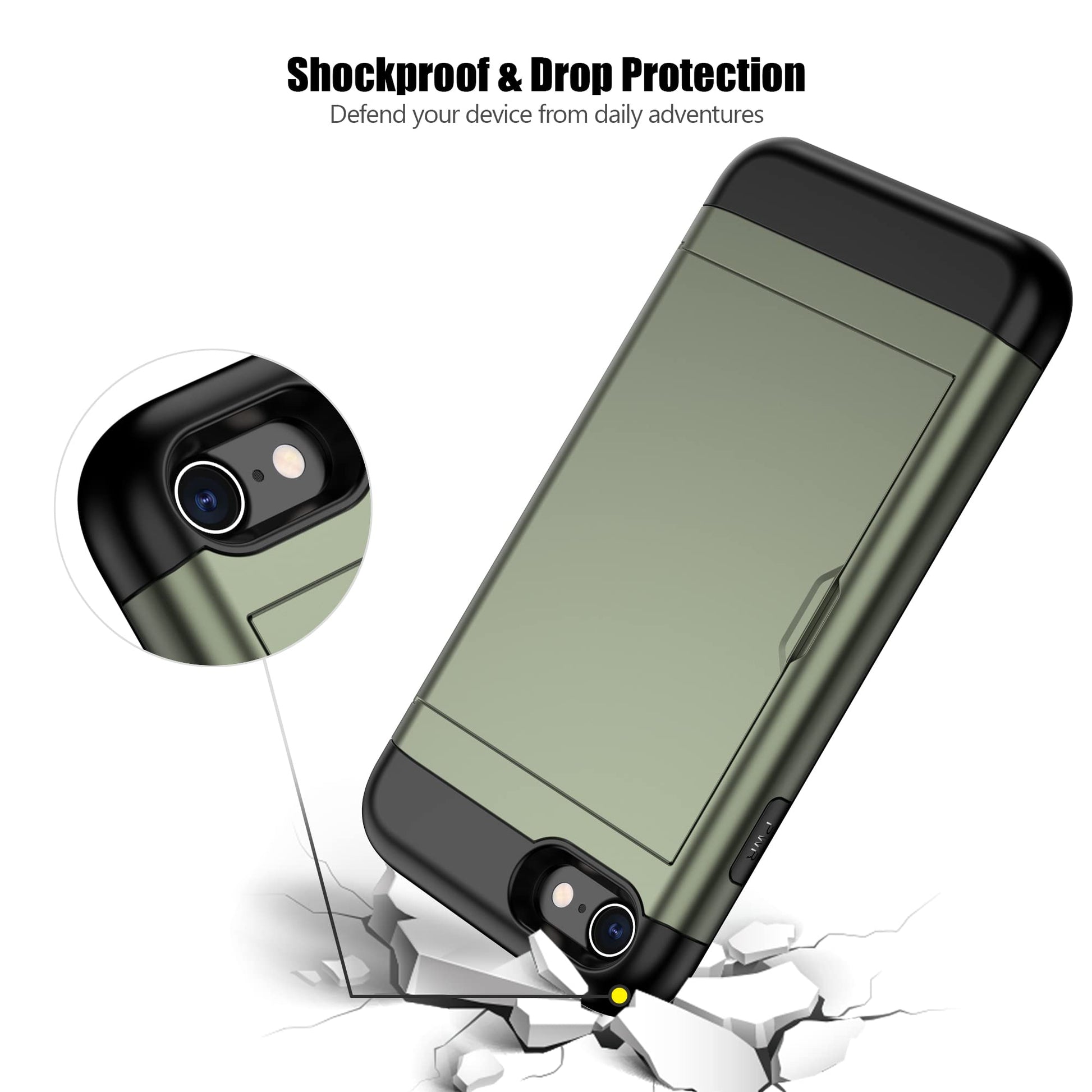 Nvollnoe for iPhone SE Case 2022/iPhone SE 2020/7/8 Case with Card Holder Heavy Duty Protective Dual Layer Shockproof Hidden Card Slot Slim Wallet Case for iPhone SE 3rd/2nd/7/8-4.7''(Green)