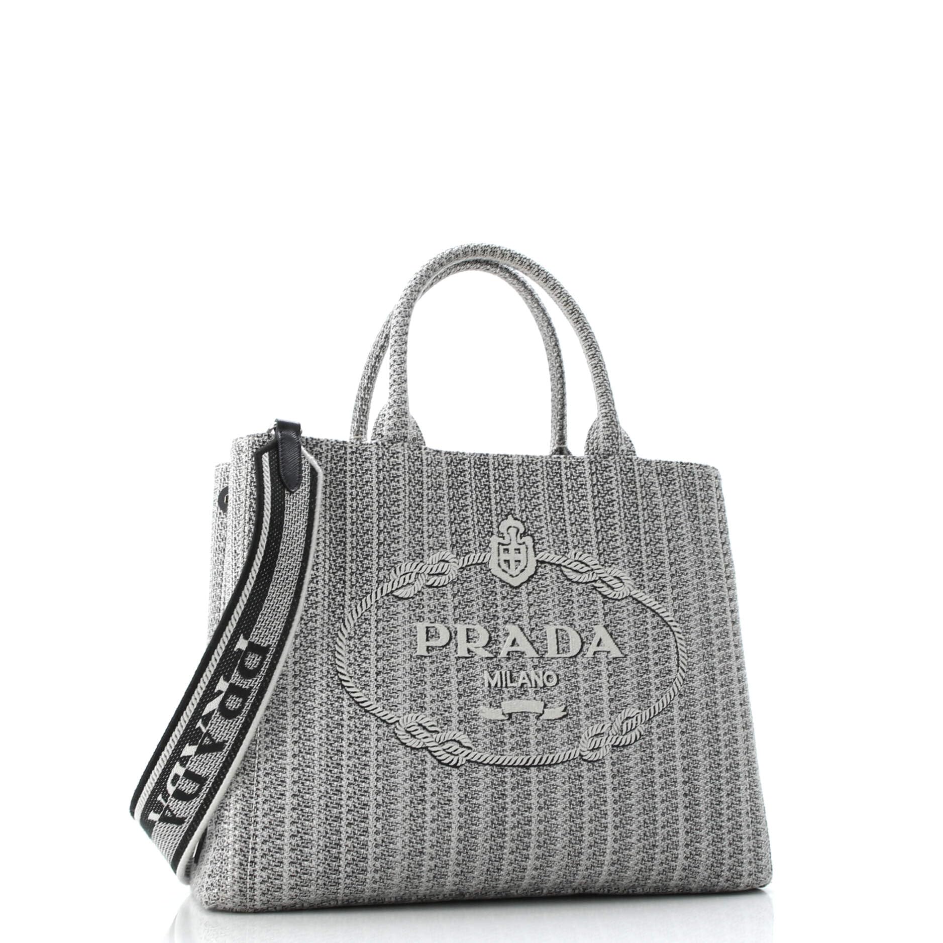 Prada, Pre-Loved Logo Strap Canapa Tote Jacquard Medium, Black
