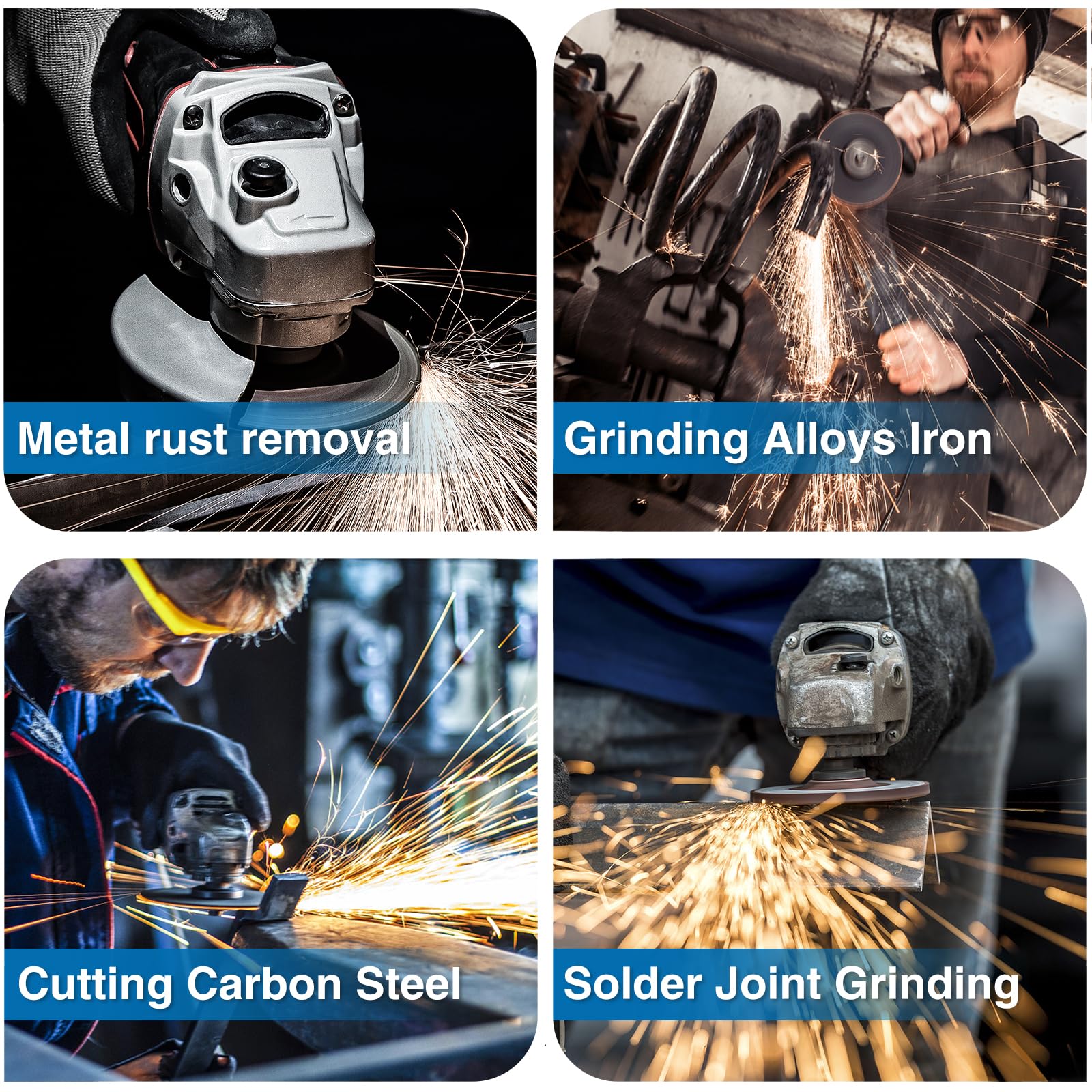 - Grinding Wheel-durable long life & High performance: ✅ The 4 1/2 grinding wheel is made of high-quality 3 full sheets of fiberglass for durability and safety, with high grain concentration of the grinder disc is made for aggressive grinding action and smoother running wheels.